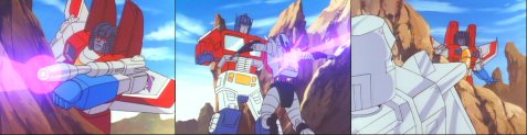 戦闘機を叩き落とそうとするも避けられてスカしたり市街地での白兵戦でビークルモード→からの飛び立ちとカッコいいのから小物臭いのまで選り取りみどり>>3