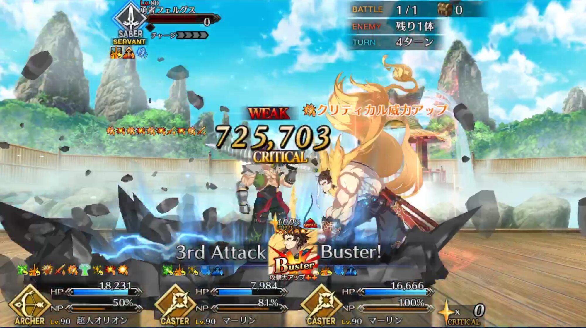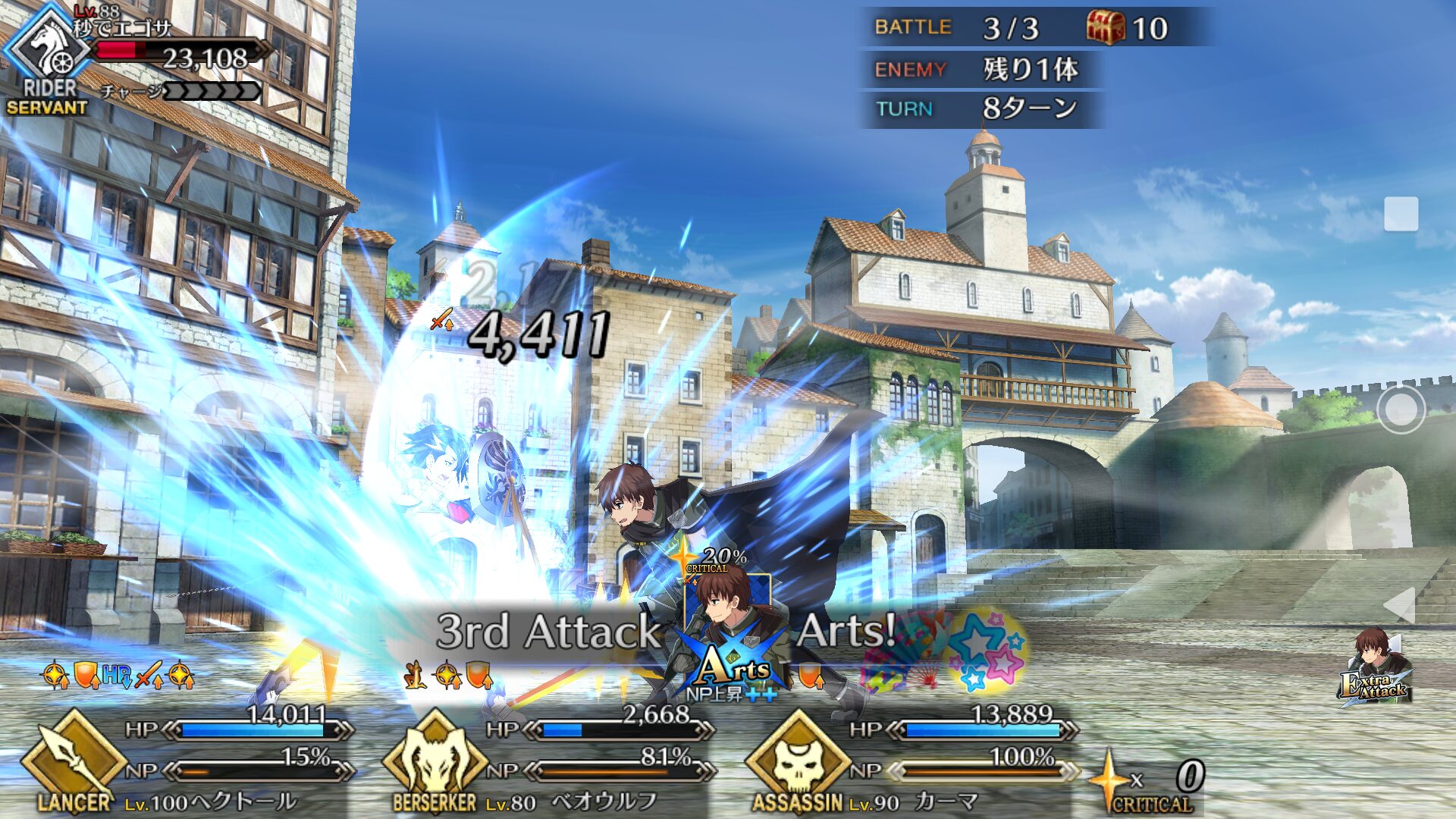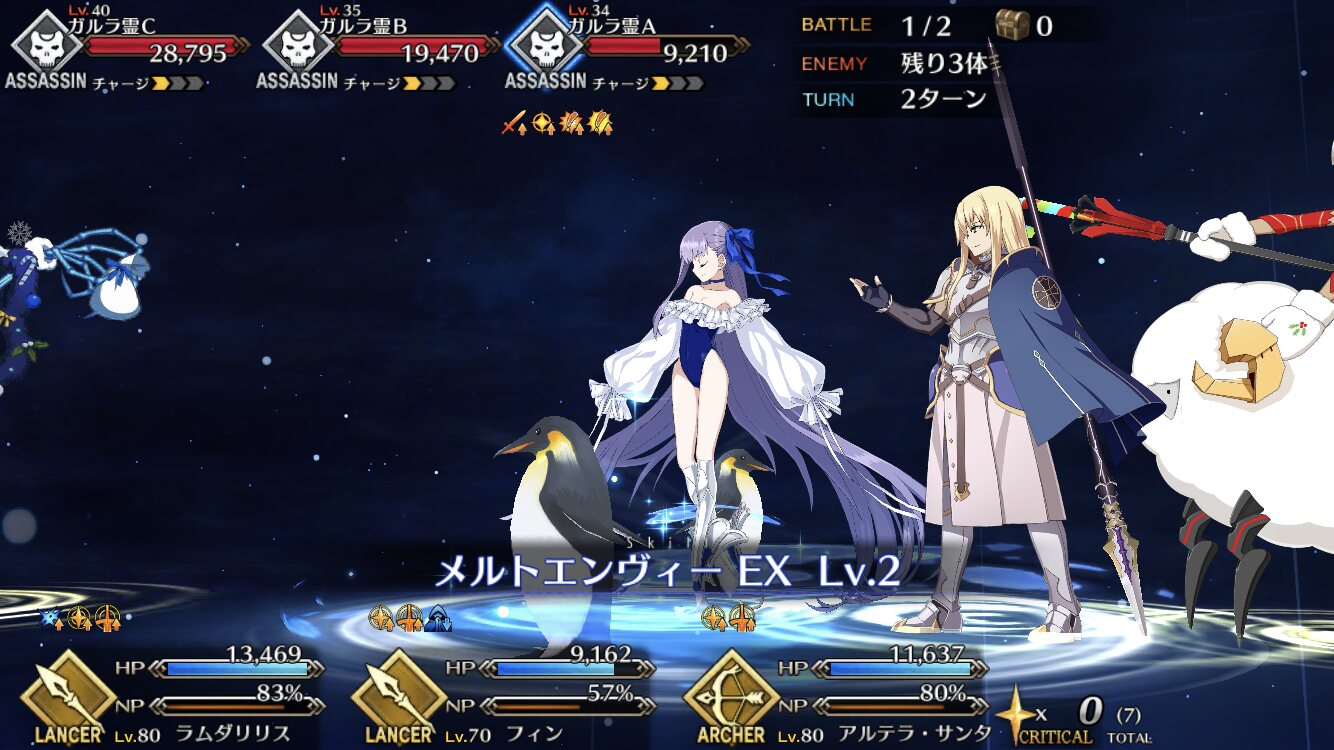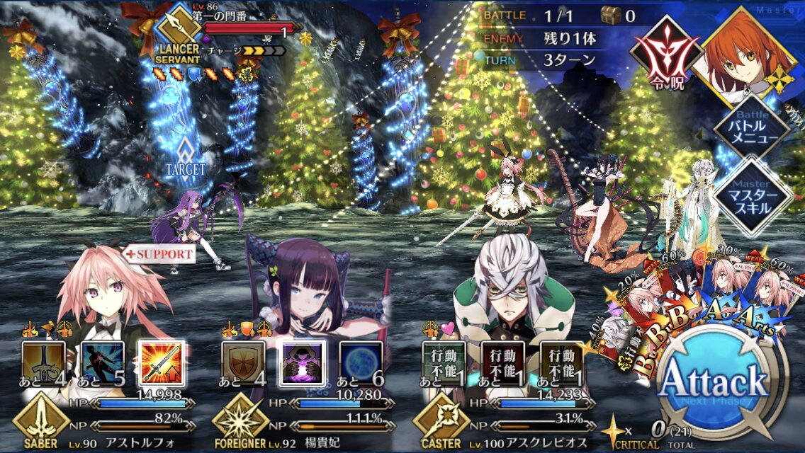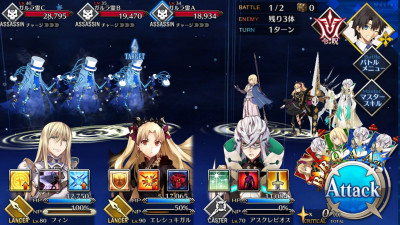 えっと、敵三体いて敵Aが残り体力少ないから攻撃→宝具→攻撃の順番にすれば全滅できるな