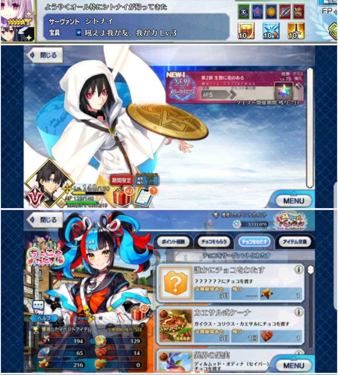 なんか静かですね。カルデアの中にはギャラルナゴンもいないしバレンタインとはえらい違いだ。