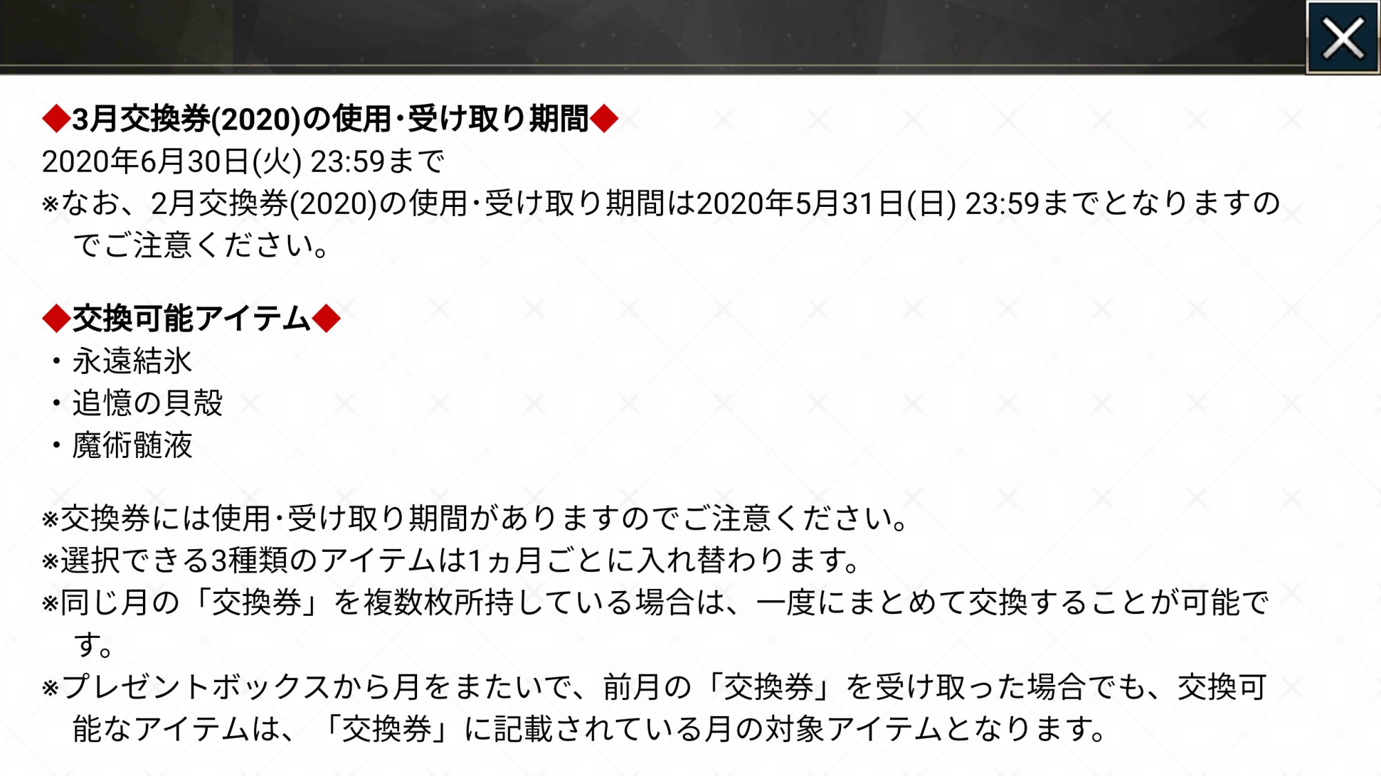 リーク・解析情報等は禁止です、荒らし・誹謗中傷等は無視し、報告・NGにて対応してください。煽りや荒らしは完全無視が最も効果的です。反応するあなたも同類です。他所への内輪ネタの持ち出しは控えましょう。二次創作物の無断転載禁止、公式関係者のイラストや転載が許可されているものに関しては必ずリンク先を併記してください。最終再臨や霊衣解放のイラスト、最新シナリオ内の画像や話題などは配信、実装から2週間は控えてください。