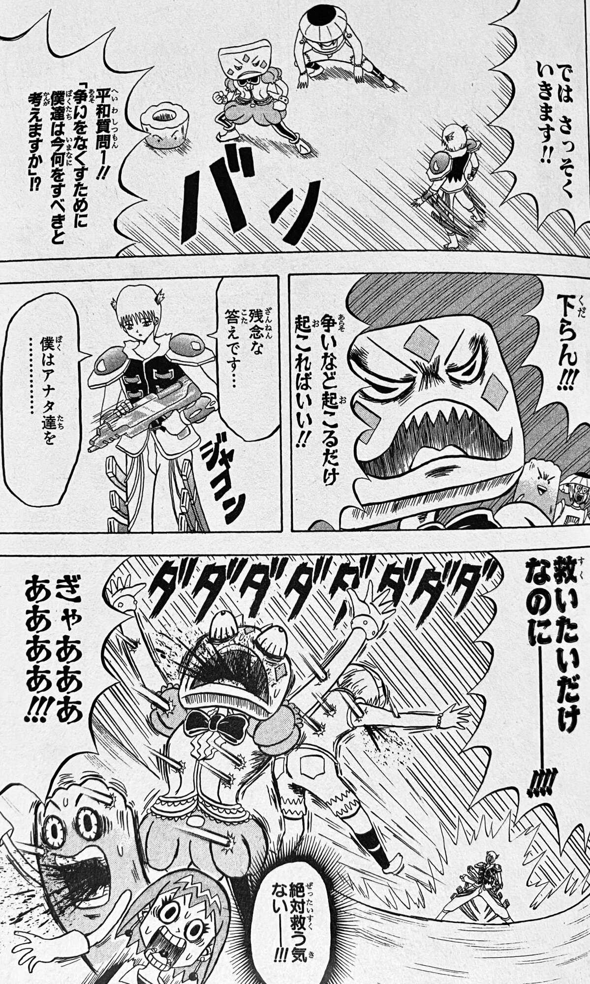 HAMADURA(説明されたけどあんま覚えてない、教える奴が金髪の巨乳美女じゃないのが悪いわ)何でも話し合いで解決できるとは思えない反面、話し合いを全否定するなら悪い意味で全世界が弱肉強食の無法地帯になるしかないというジレンマ。