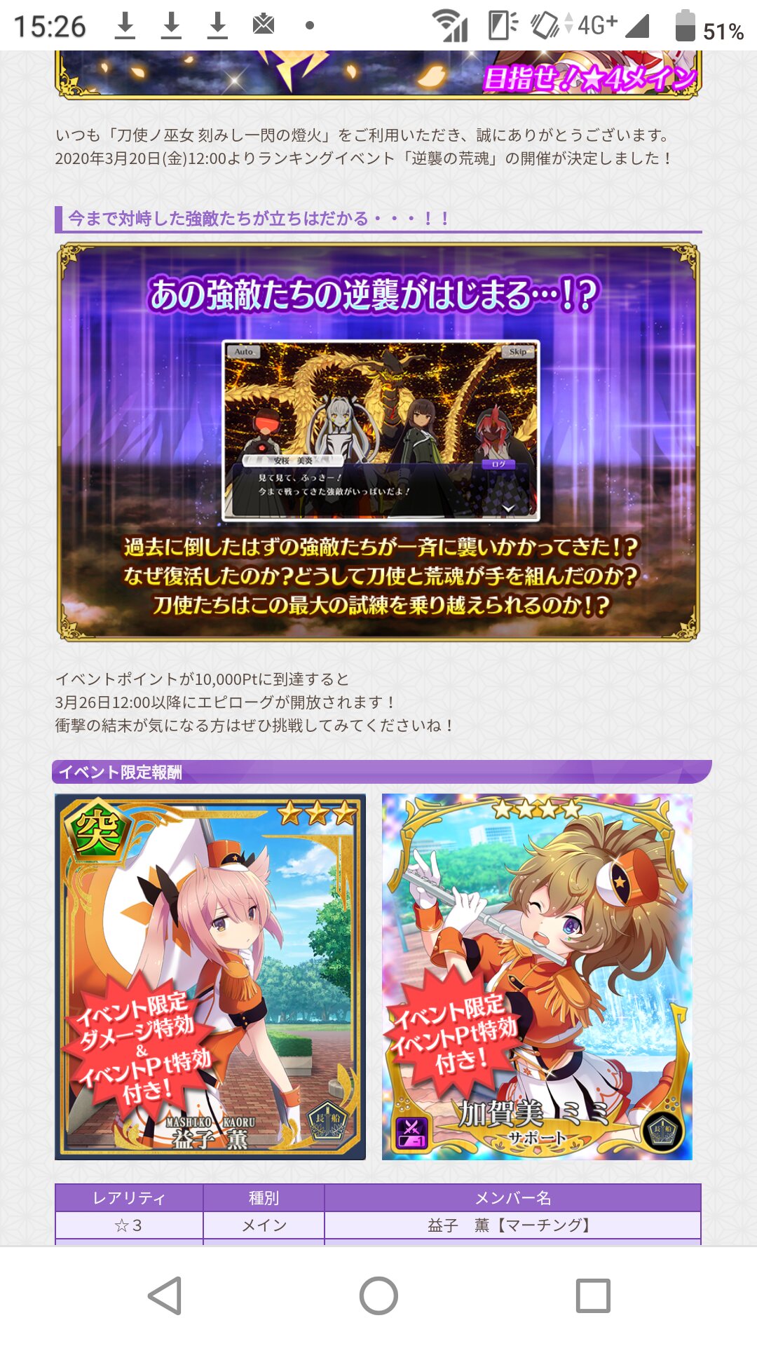今やっと総戦力50000超えてシナリオが風斬氷華まできたところ。