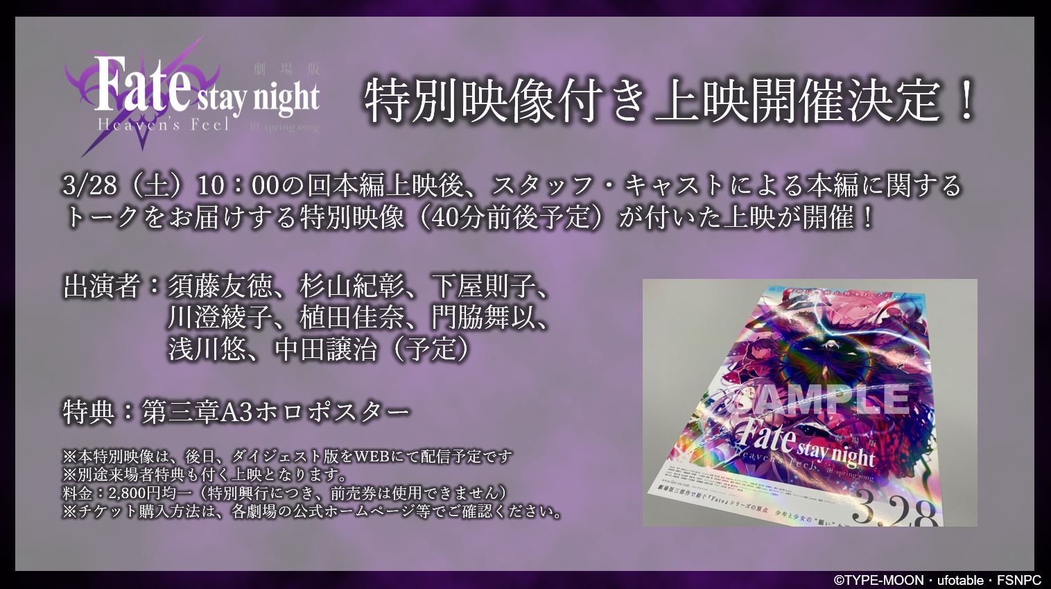 3/28(土)10時の回本編上映後、スタッフ・キャストによる本編に関するトークをお届けする特別映像が付いた上映が開催!