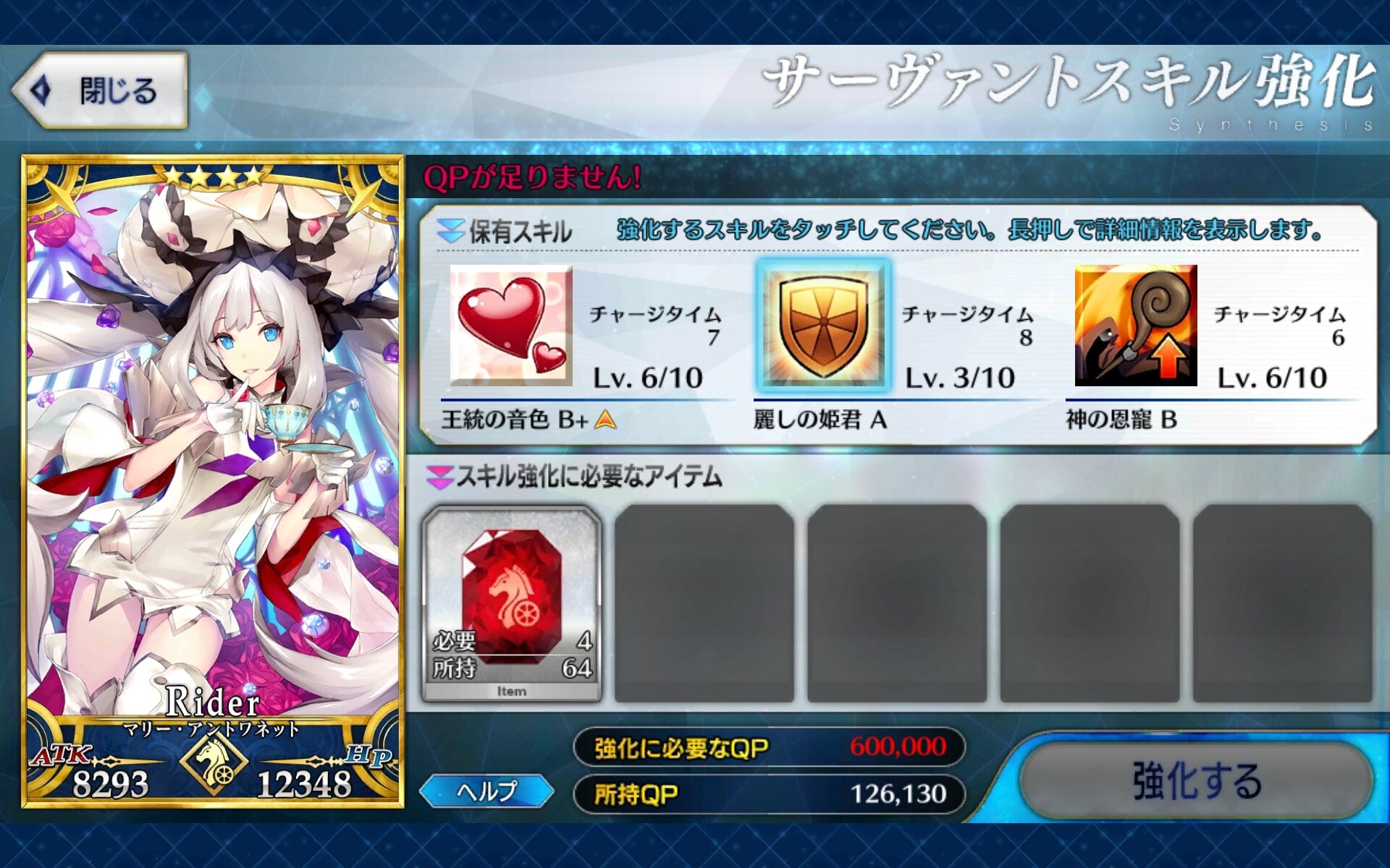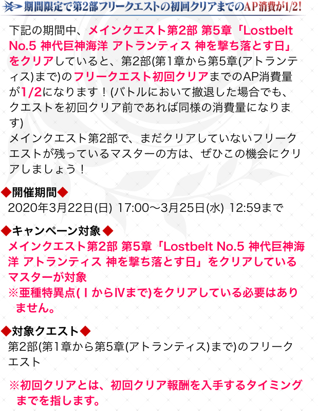 欲しい……あー4章前に強化キャンペーンでAP半減こねぇかなー(←ケチ)(黒王もカエサルもマリーも翁も強化すんでない)