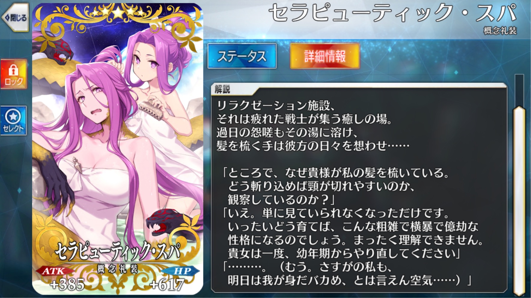 楊貴妃の〔生ける火〕状態そのものに追加効果があるやつ、それができるなら、パリスの〔急所判明〕状態、エレシュキガルの〔冥界の護り〕状態、にもそれそのものに追加効果つけて欲しい>>980