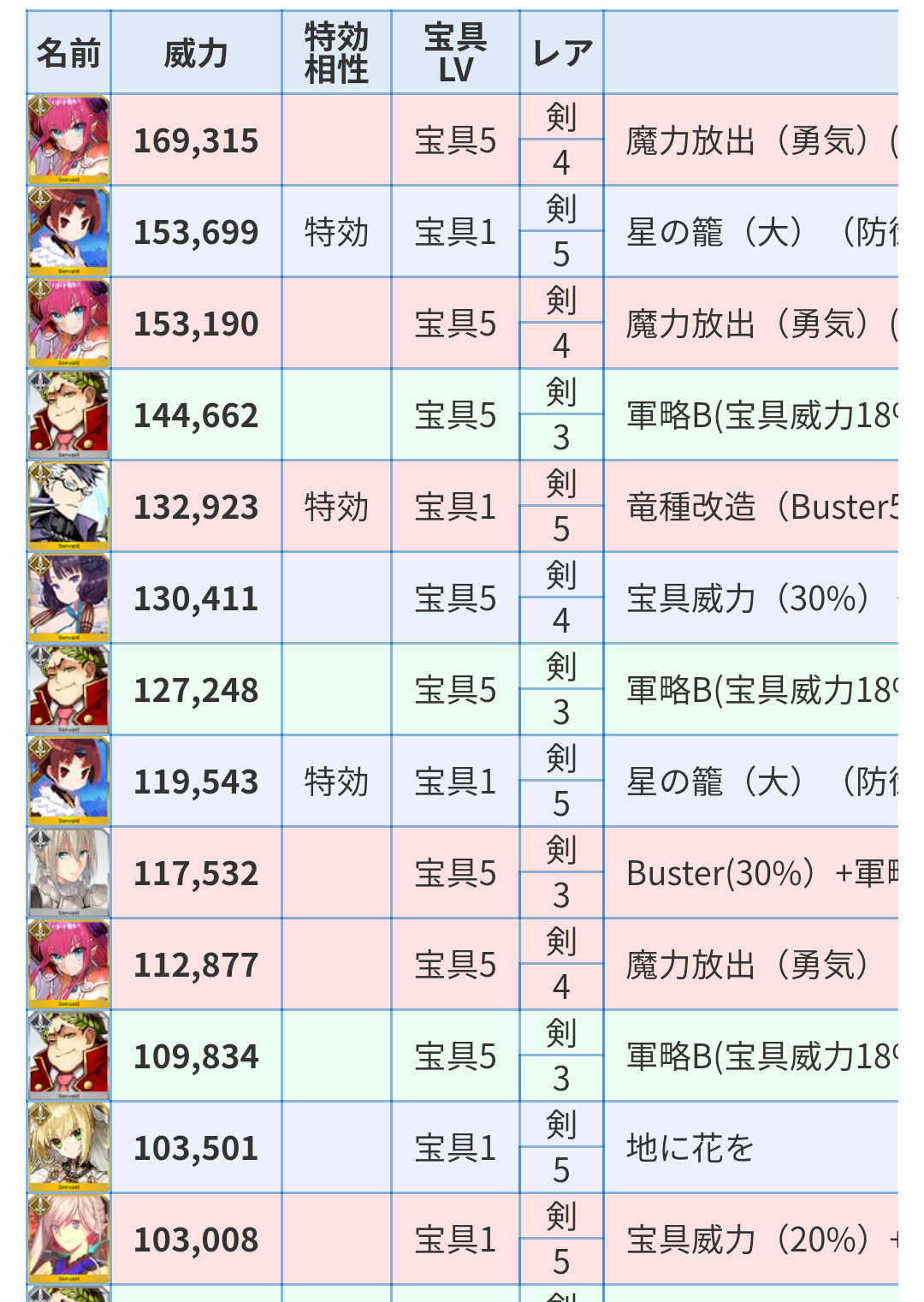 宝具5ベディは宝具1武蔵や判定0カエサル以上、北斎や判定3カエサル以下の火力