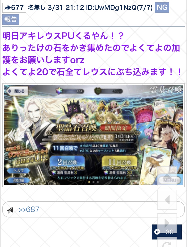 ネタバレ、最終再臨バレに関する話題で書き込むのが躊躇われる場合は下のスレへ。