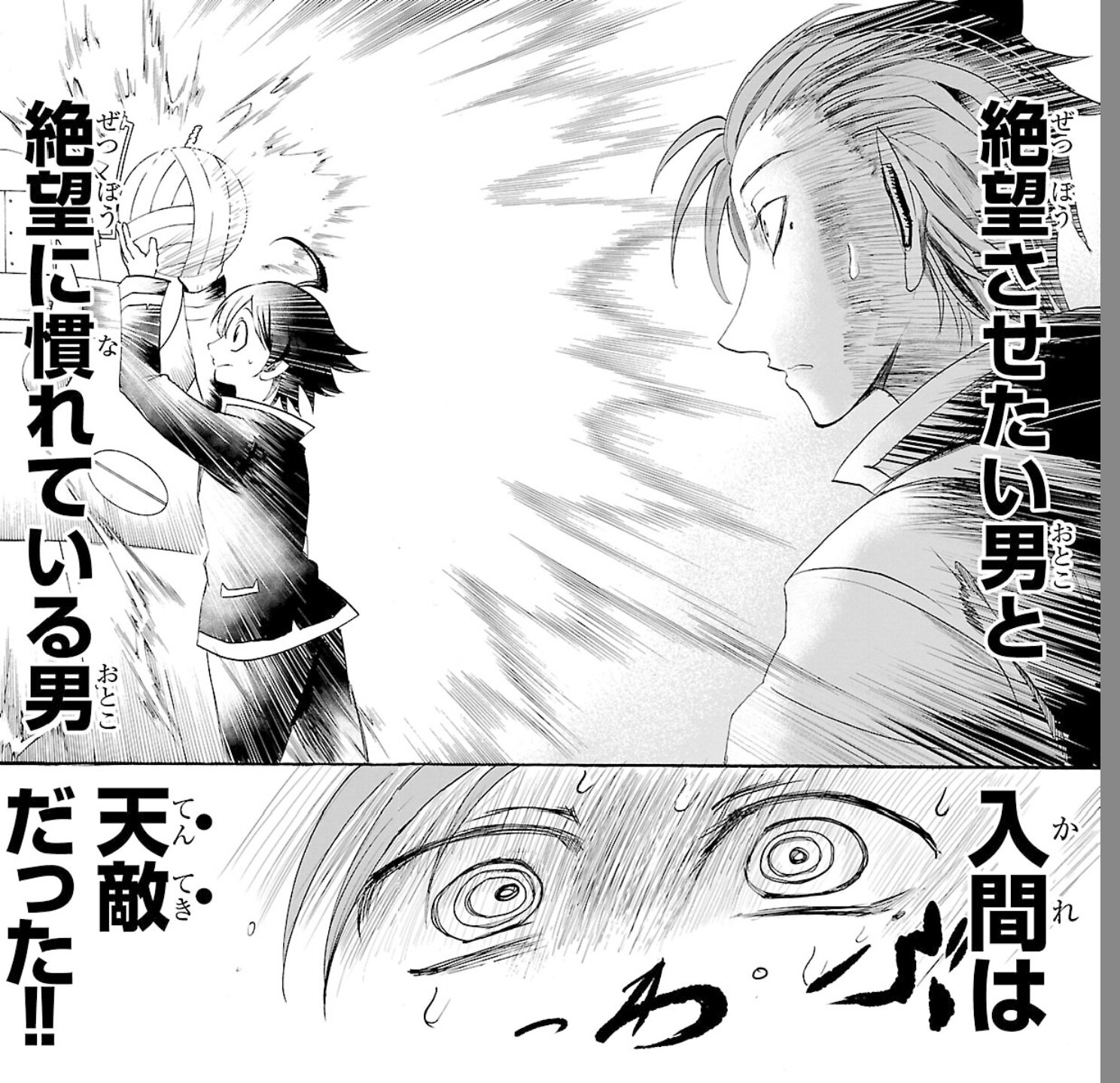 敵の必殺技にあえて踏み込み、捨て身でカウンターを叩き込む、敵の力が強ければ強いほど威力が上がる交叉技。ケンイチの「手刀無斬」