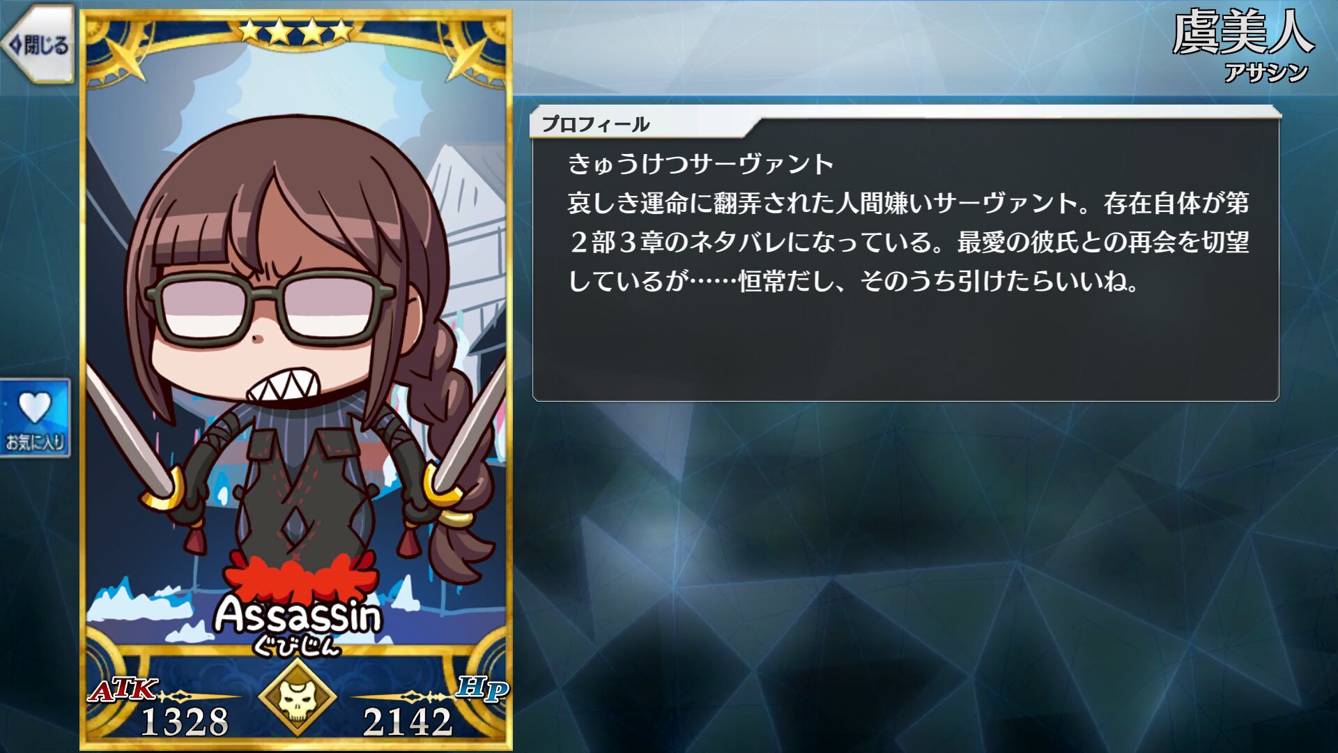 元々項羽様は星5の中では唯一のQ全体バーサーカーというスカディ と良相性な性能のおかげで一定の地位を保っていたけど、幕間での強化により待望のスター集中を獲得。これにより相手を選ばず殴れるクリアタッカーという至高の存在へと進化なさったわ