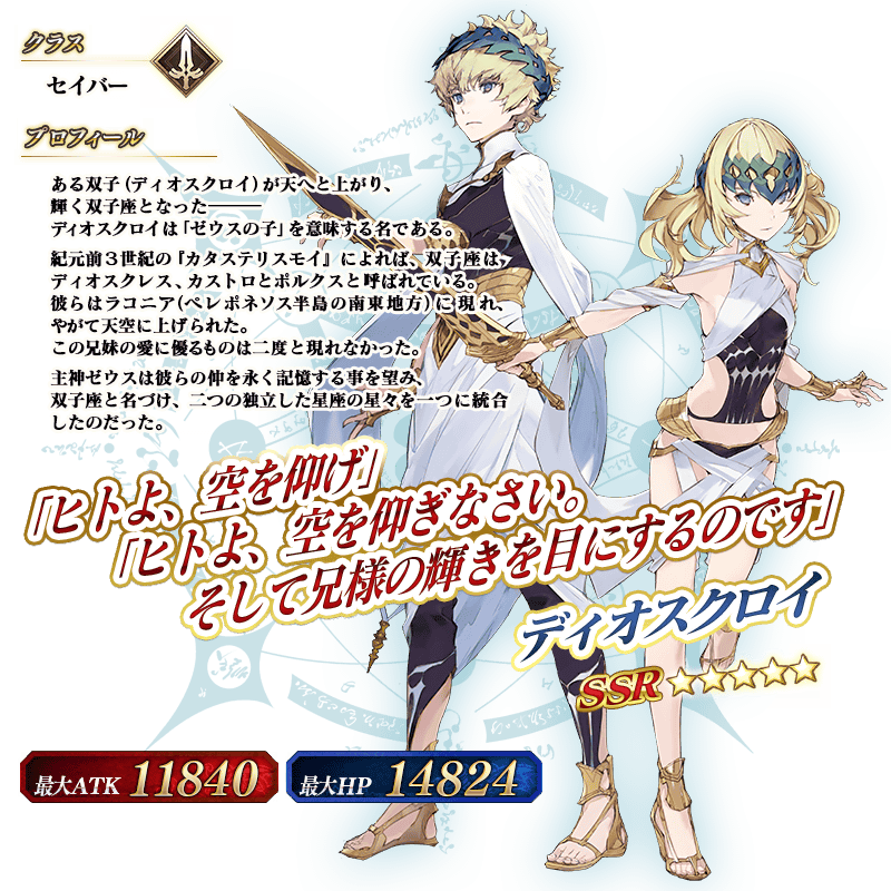 それはそれとしてポルクスちゃん履いてないってのはいいな、でも先に書いた通り当時のギリシャでも履いてるのは履いてるから召喚の際の不都合でパンツがないということにしておこうあんな最早スカートとすらいえない帯のようなものと超ローライズななにかでしか下半神守っていないとかどうなってんのギリシャ風邪吹こうもんならモロ出しになっちゃうじゃん暖かいおべべ着てコーンスープでも飲みなワイ愛知県民