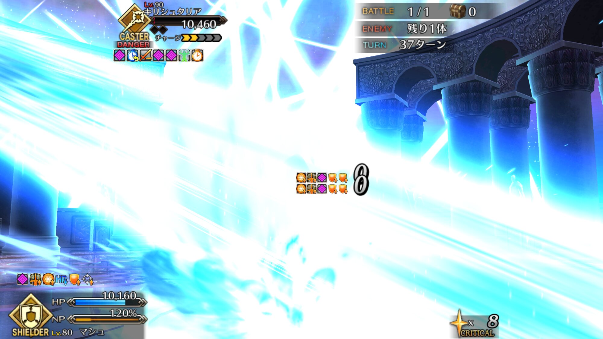そういえばこの人、眉毛どうした?こんなエミヤみたいな眉尻だったっけ?序盤のタロス二戦目、やたらと硬くてムズいなと思ったら武蔵ちゃんで特防解除できたのか