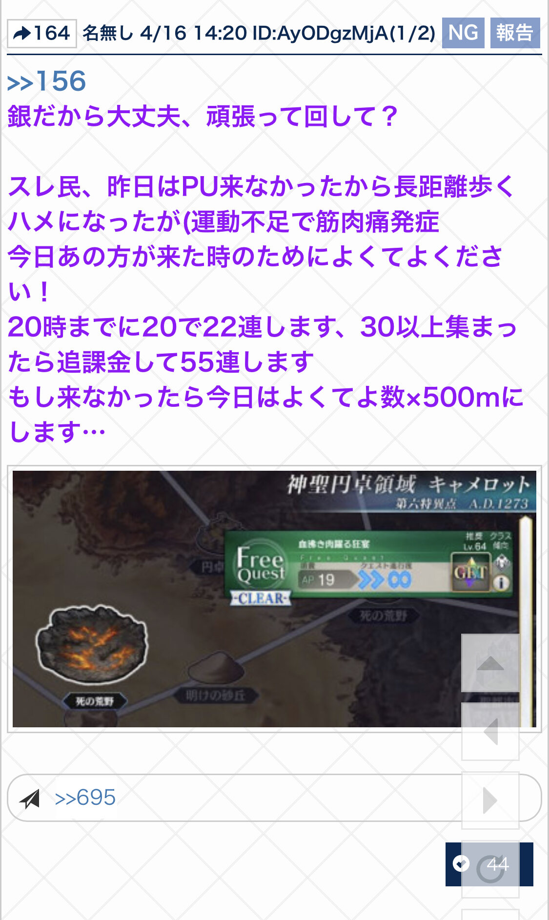 リーク・解析情報等は禁止です、荒らし・誹謗中傷等は無視し、報告・NGにて対応してください。煽りや荒らしは完全無視が最も効果的です。反応するあなたも同類です。他所への内輪ネタの持ち出しは控えましょう。二次創作物の無断転載禁止、公式関係者のイラストや転載が許可されているものに関しては必ずリンク先を併記してください。最終再臨や霊衣解放のイラスト、最新シナリオ内の画像や話題などは配信、実装から2週間は控えてください。