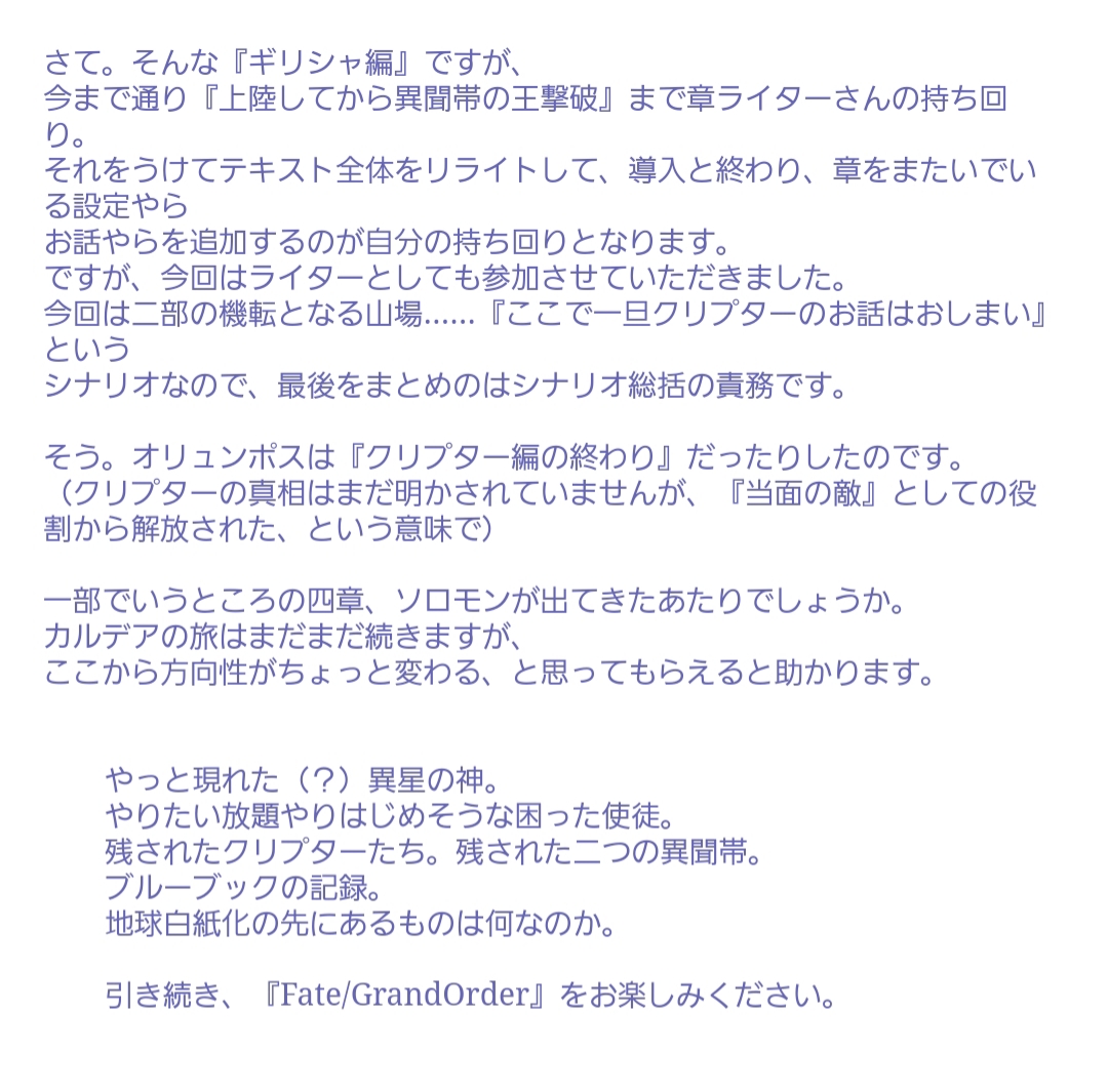 えっと…なんて言ったらいいんだろ。各異聞帯のポイントって何故そのルートが剪定されることになったかって部分だと思うし、そこが汎人類史の肯定とカルデアの勝ち筋にもなってると思うんだ。