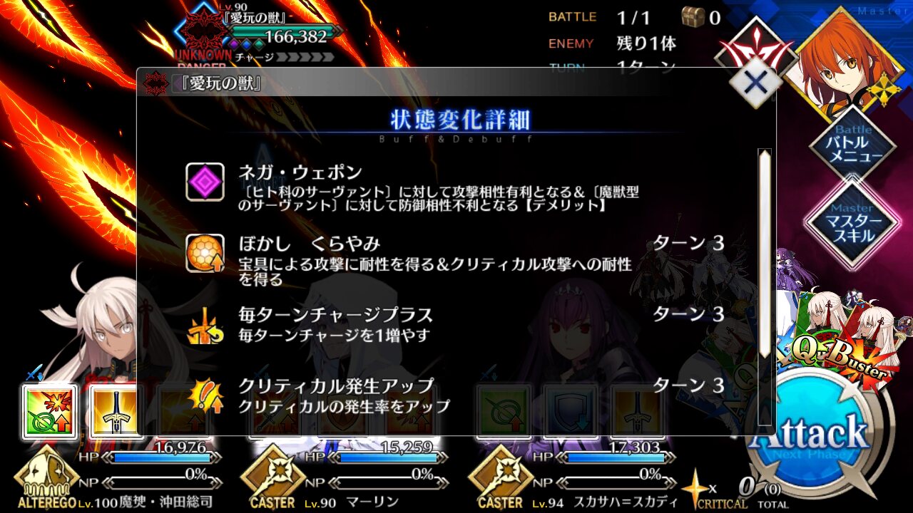 ゼウスに特効だったのはブラックバレルだけだね今回のカオスの下りで思ったんだけど、なんか武蔵ちゃんの強さの描写が薄っぺらく感じるんだよね。