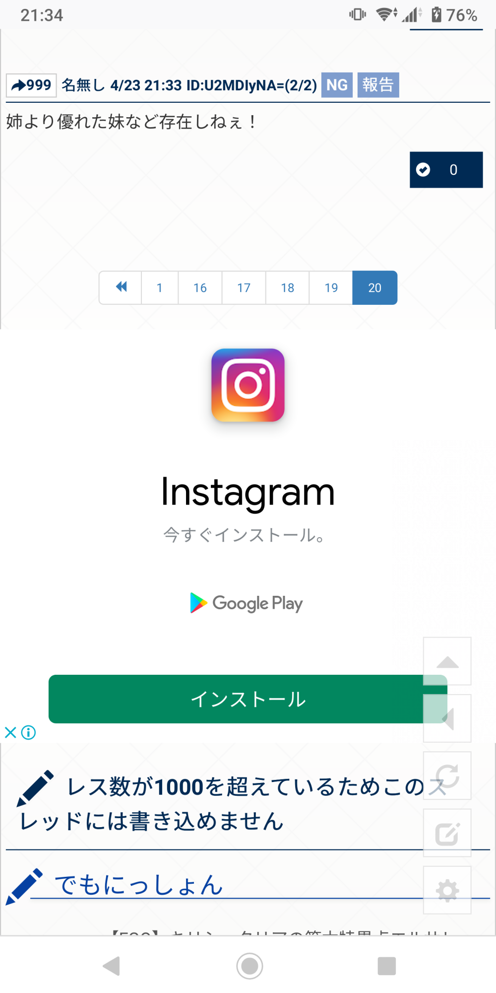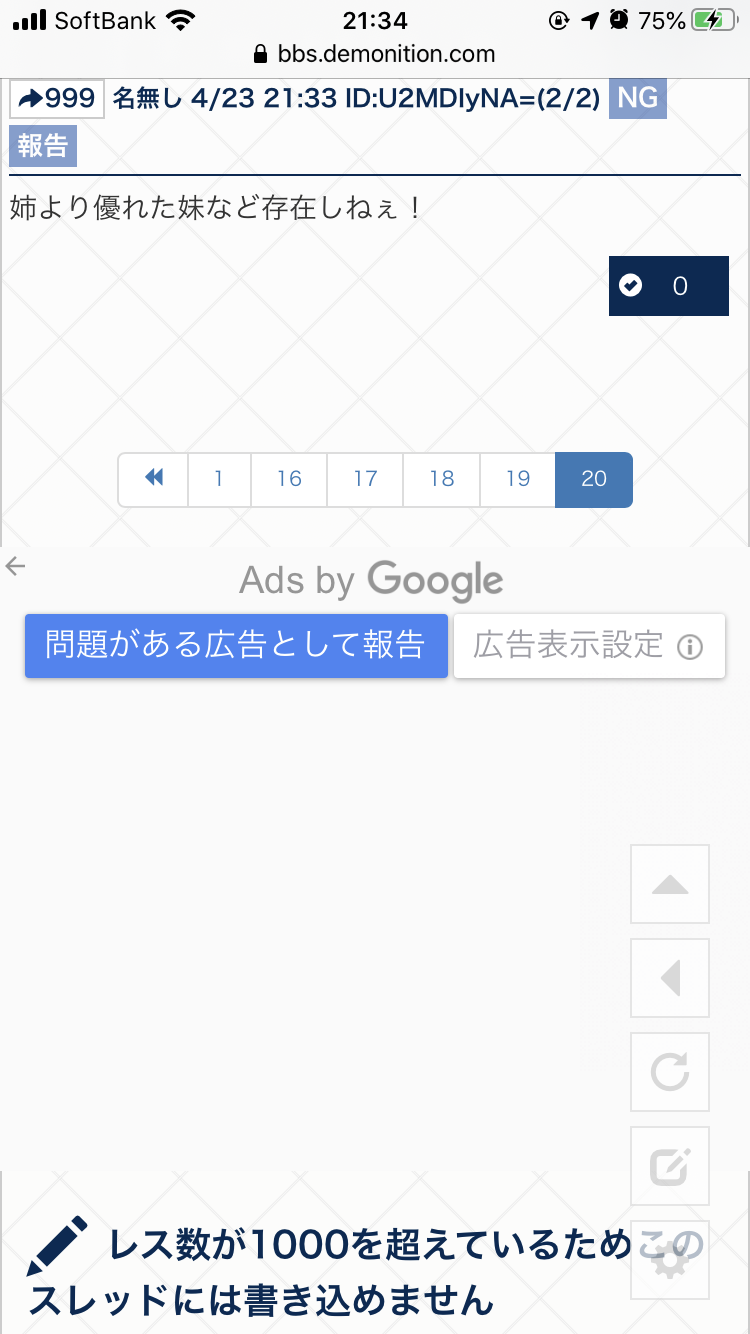 999よりも1000の方がレスとしては優れているが姉より優れた妹など存在しないと姉に言われてしまった。