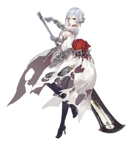 燃え尽きた木材のような真っ白な髪に、赫炎を宿す緋色の瞳を持つ女性。緋色のブラウスに白いスカートを身につけている。見目麗しい美女だが何よりも目を引くのは身体中に巻かれた包帯だろう。