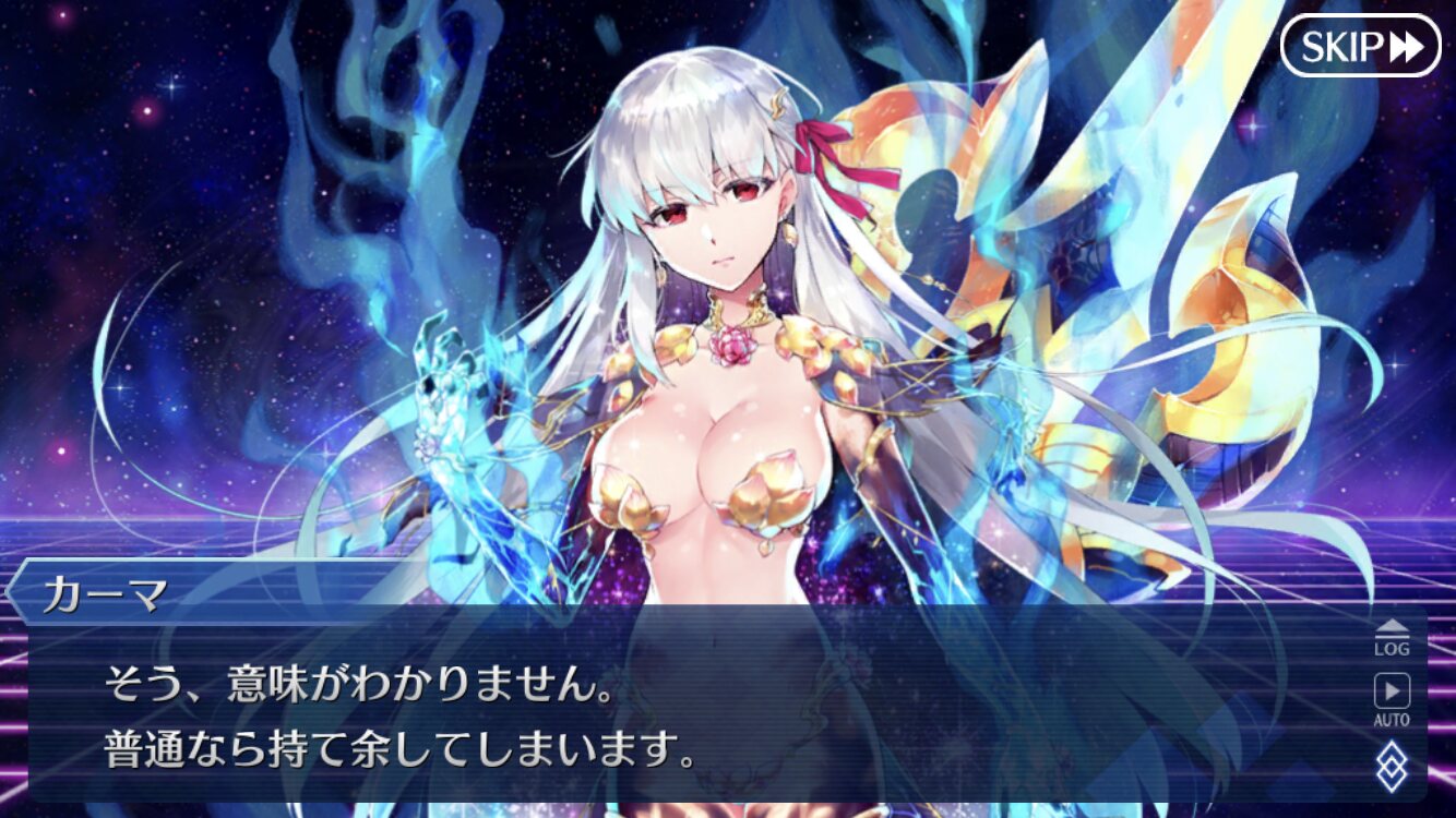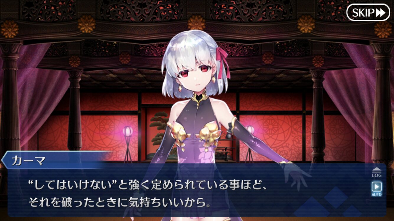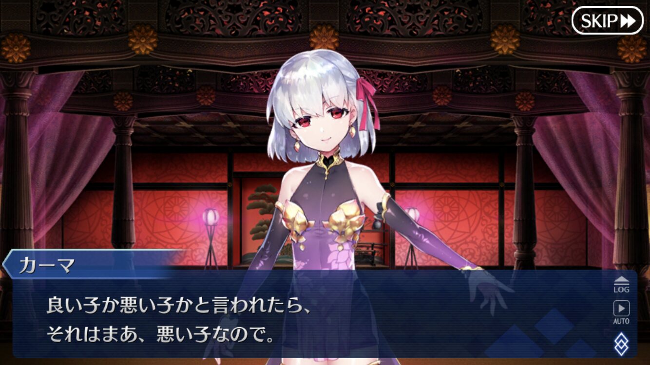 あんちくしょうとか言いながら休んでほしいという捻れっぷりよカーマ、第一再臨の服着たまま大人になってる姿見たいな