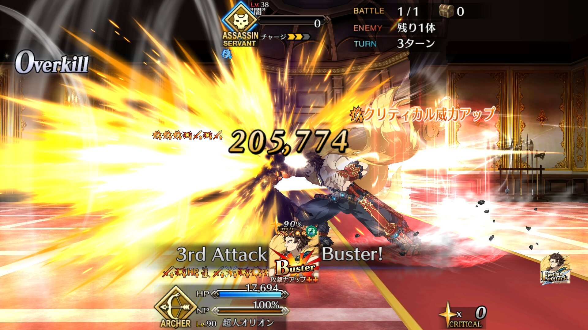 ガッツ(HP1残して耐える)&ターゲット集中(3T)&毎ターンスター獲得(3個)