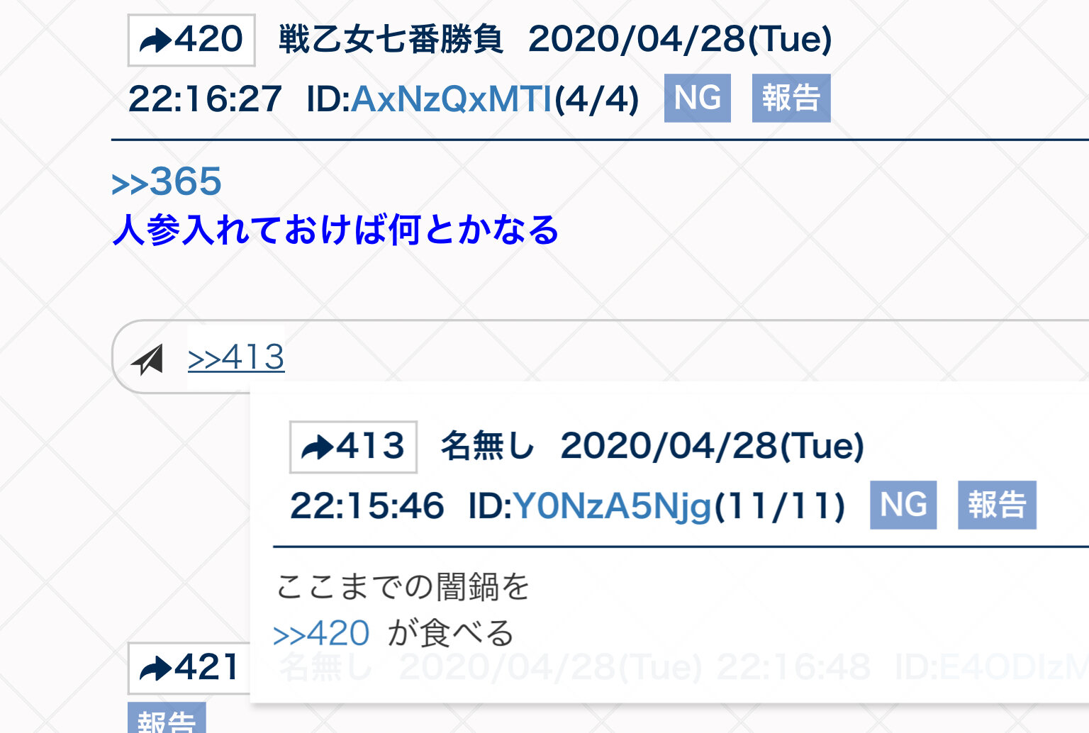 しりとりは自由に書き込める掲示板でやるもんじゃないな……そもそもこの手の掲示板でしりとりは安価でもしない限り難しい