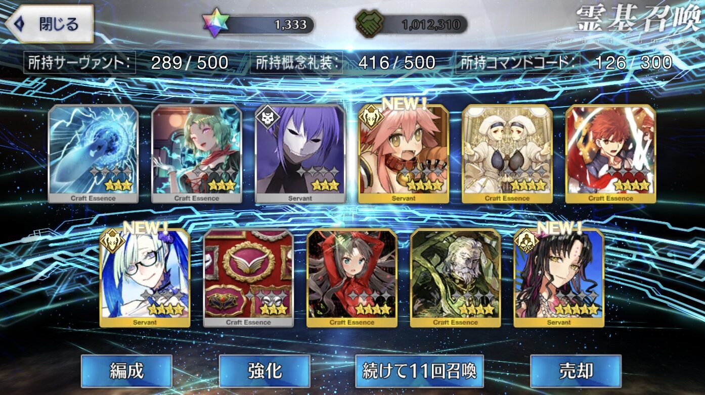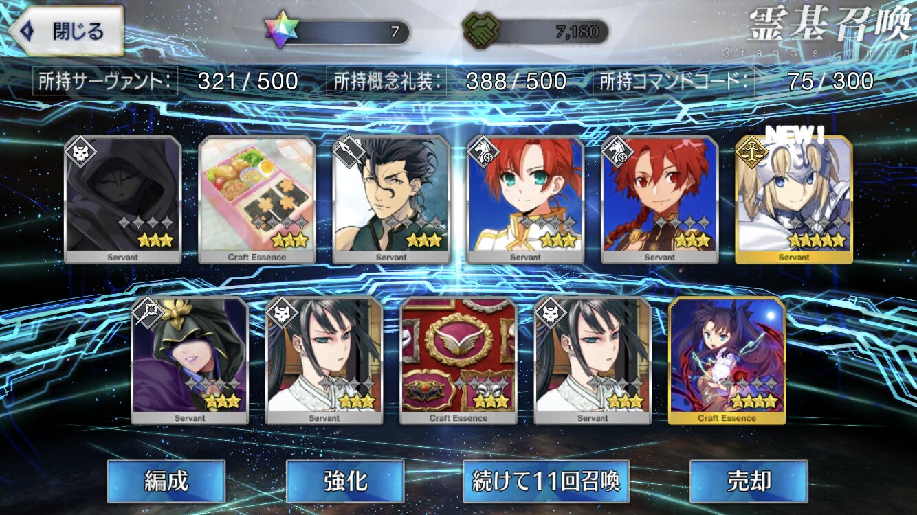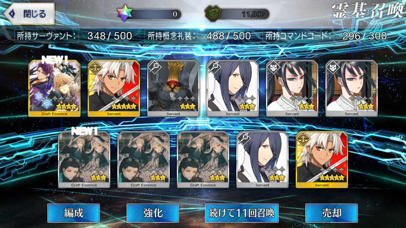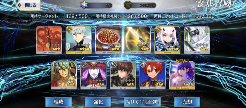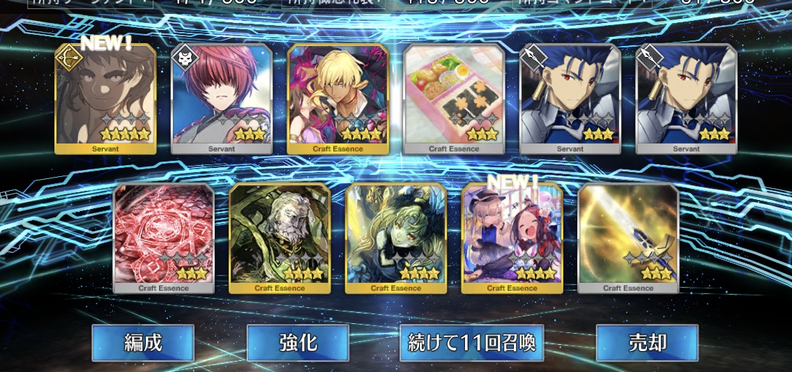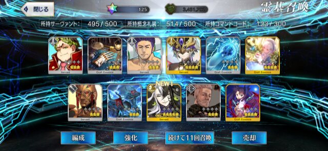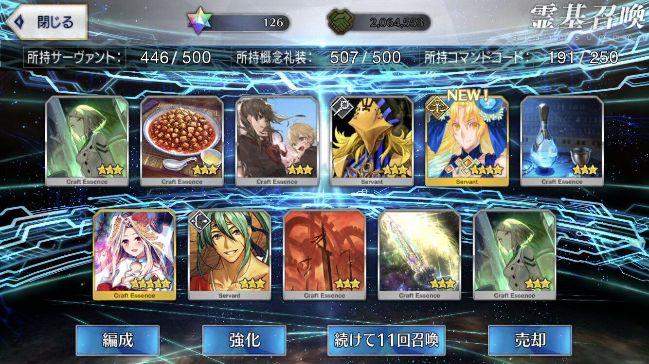 攻撃力UPの効果が上がるらしい11連28回で☆5はアルジュナ1人