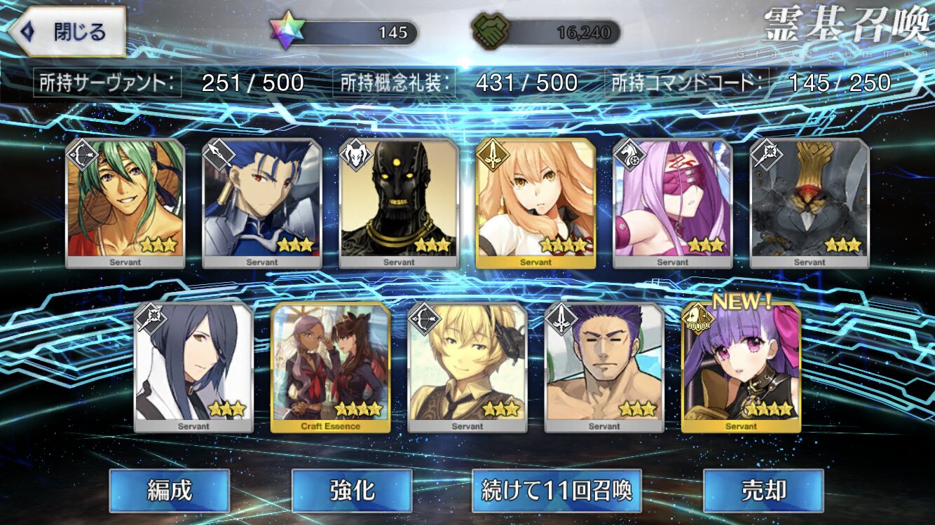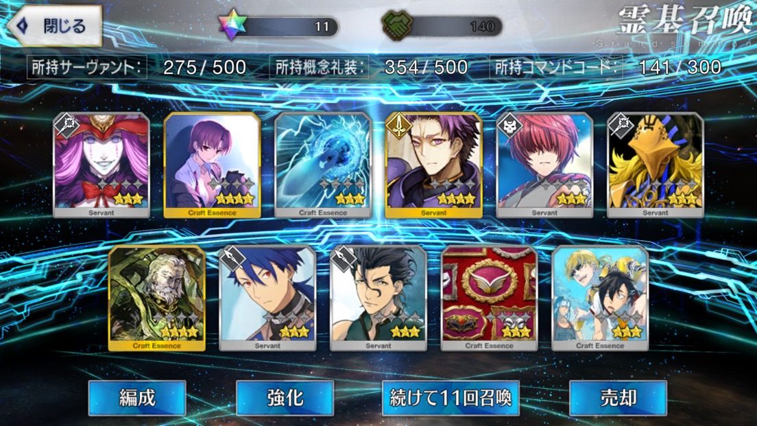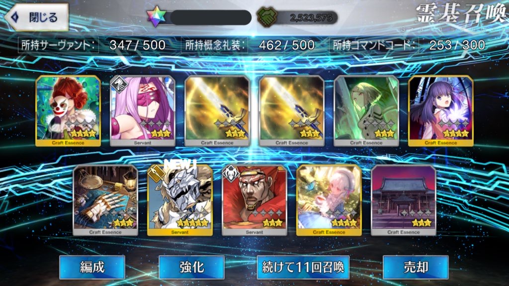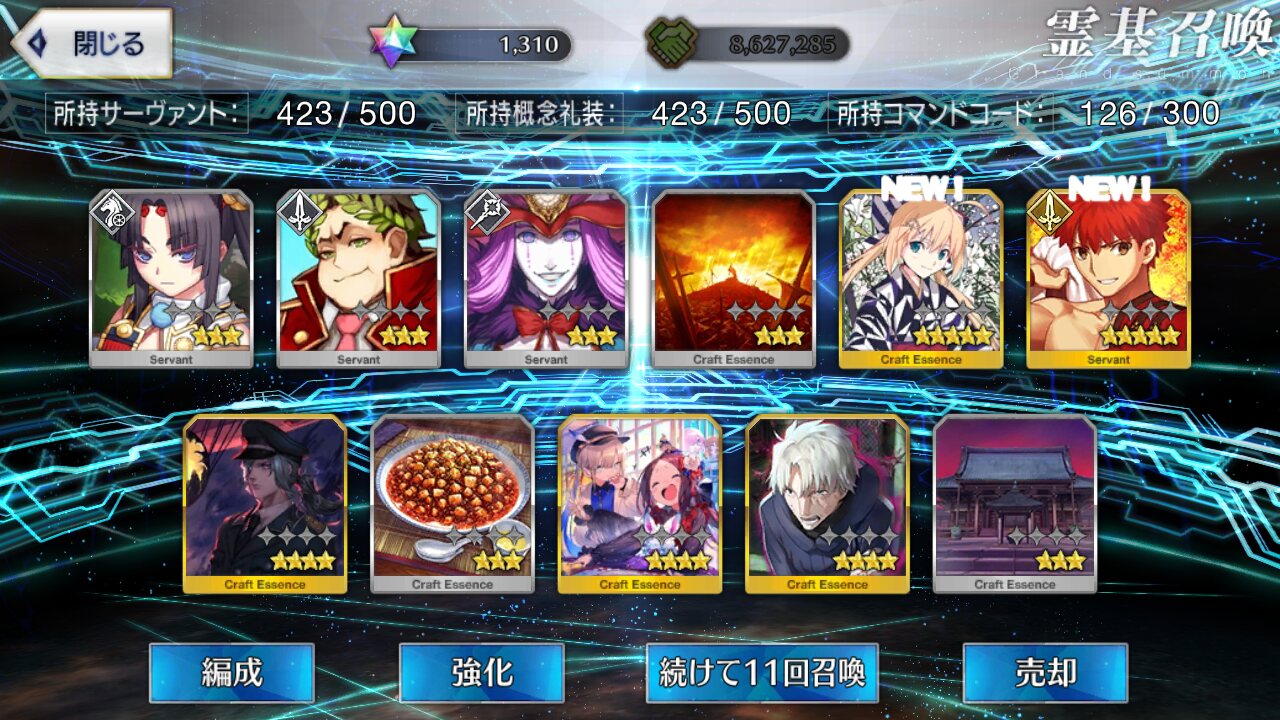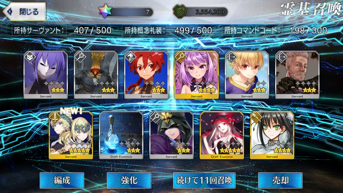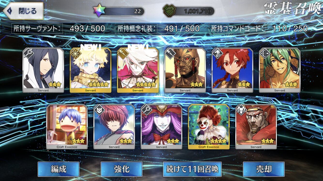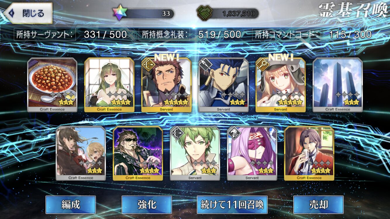 攻撃力UPの効果が上がるらしい11連28回で☆5はアルジュナ1人