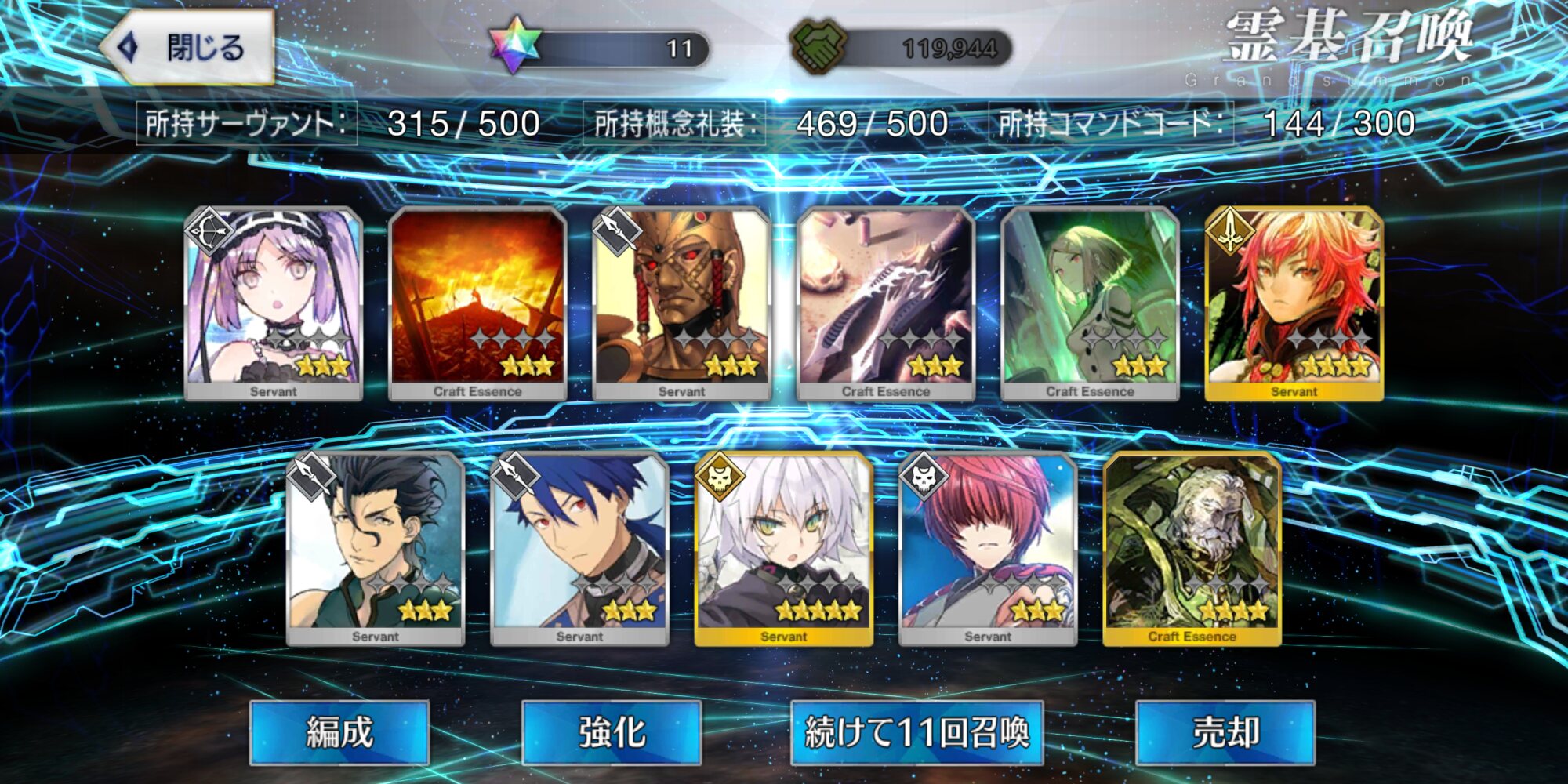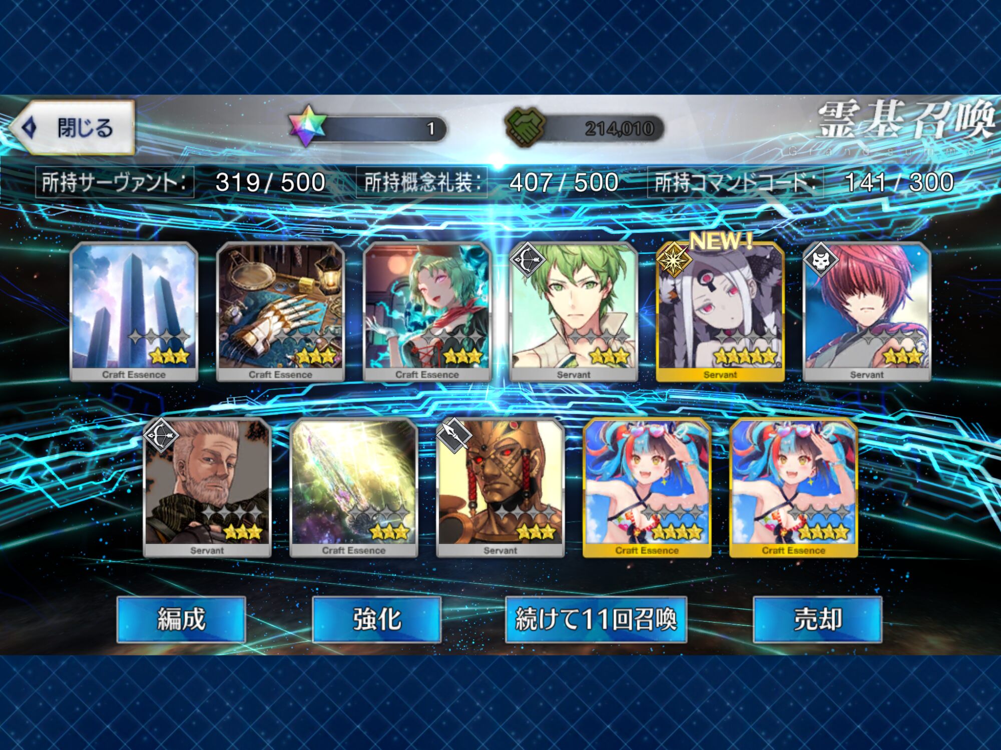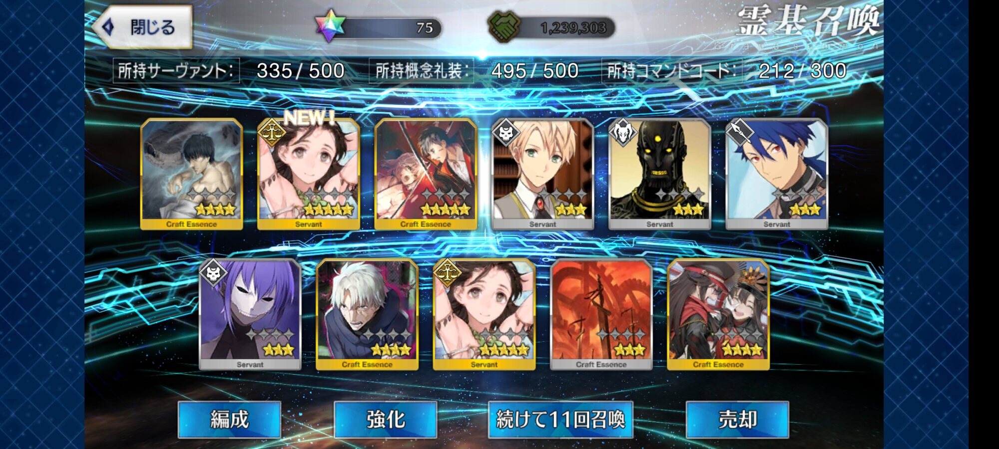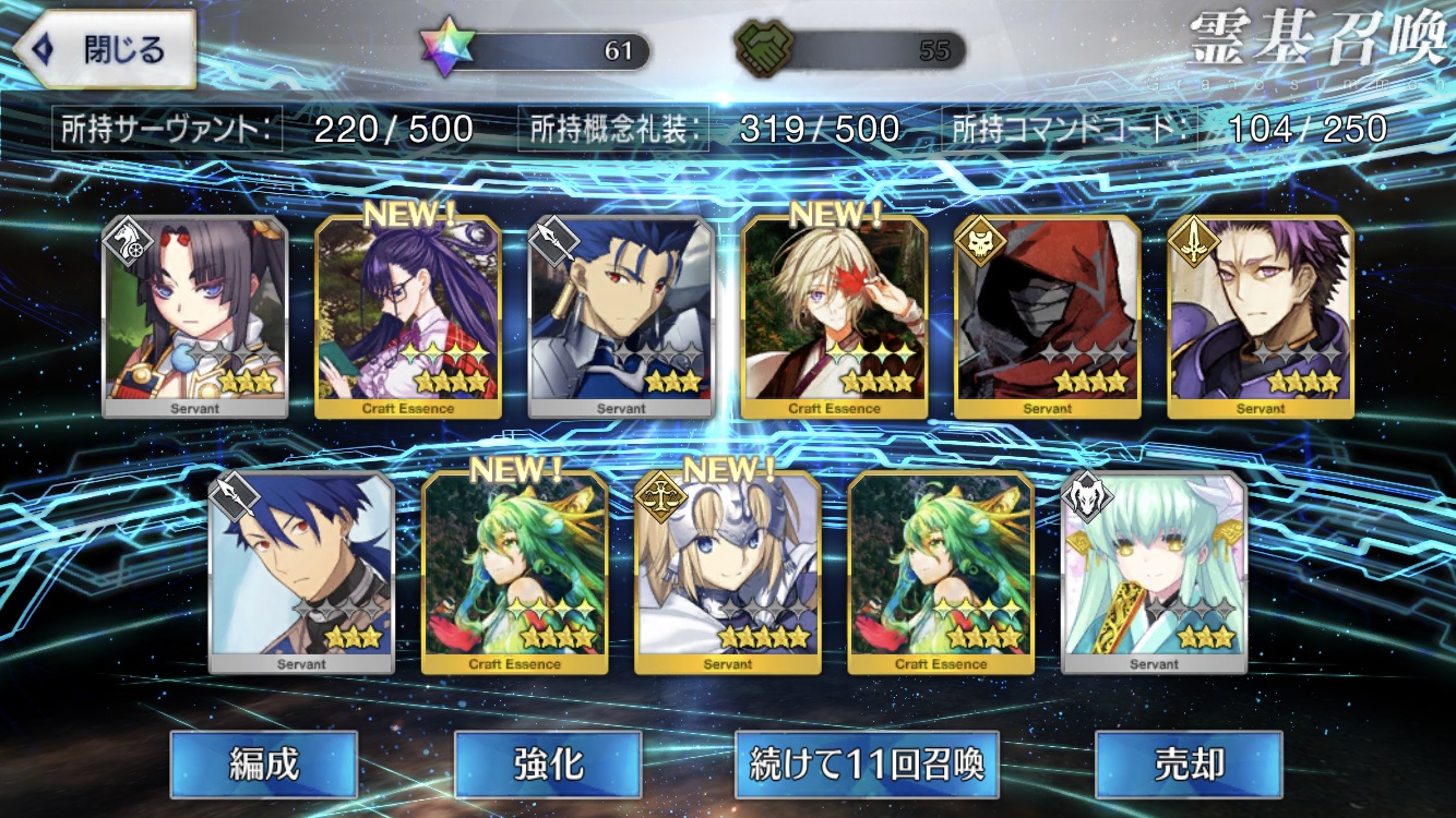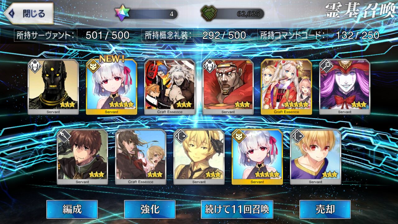 攻撃力UPの効果が上がるらしい11連28回で☆5はアルジュナ1人