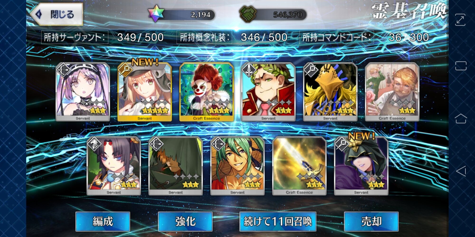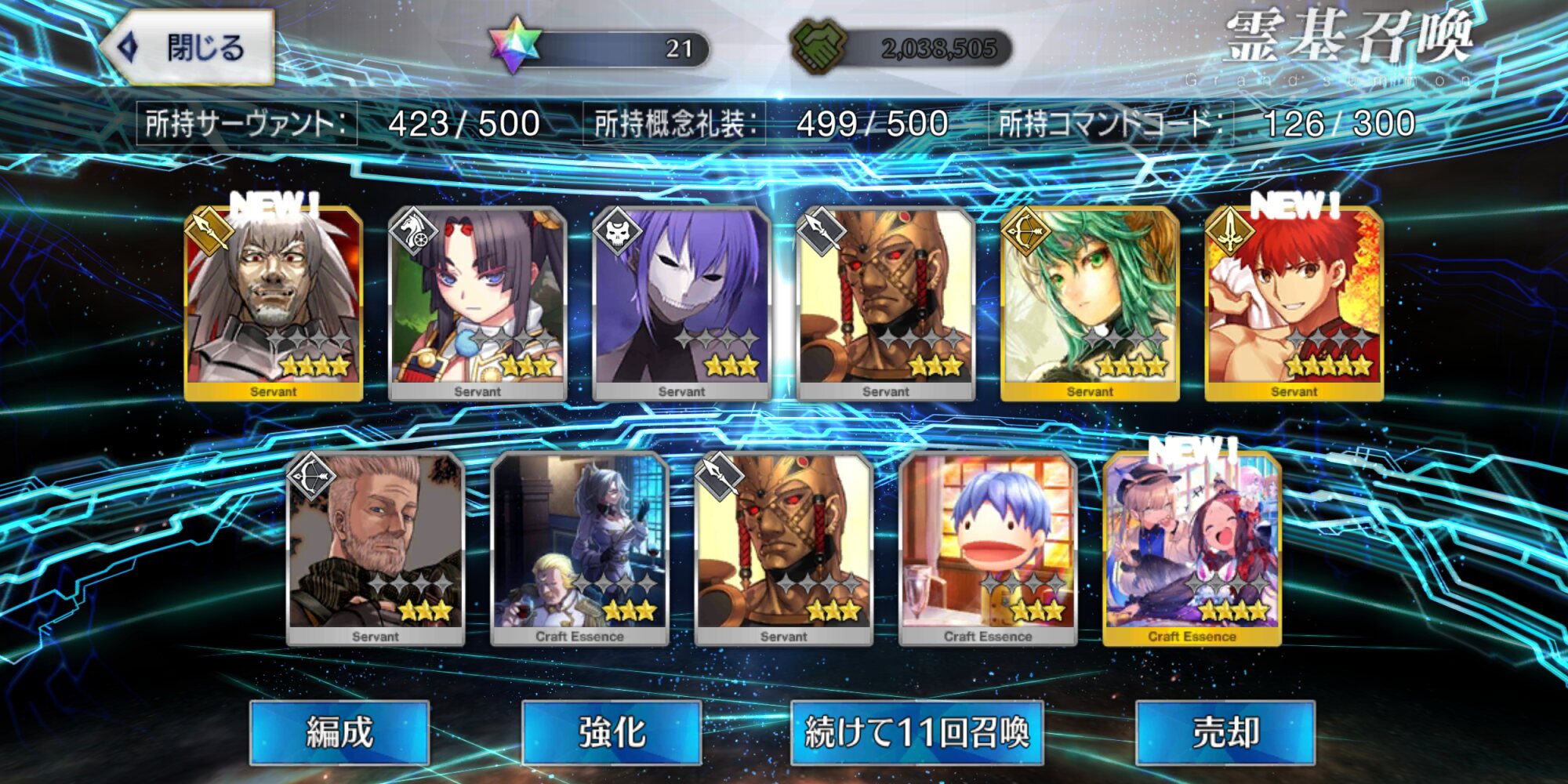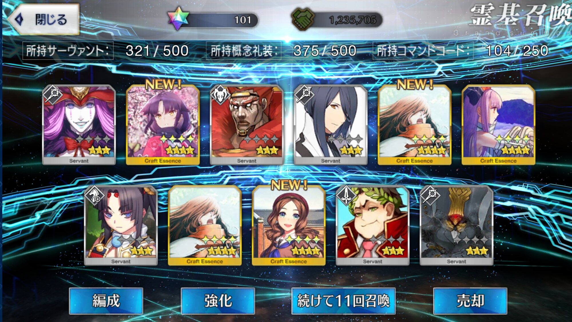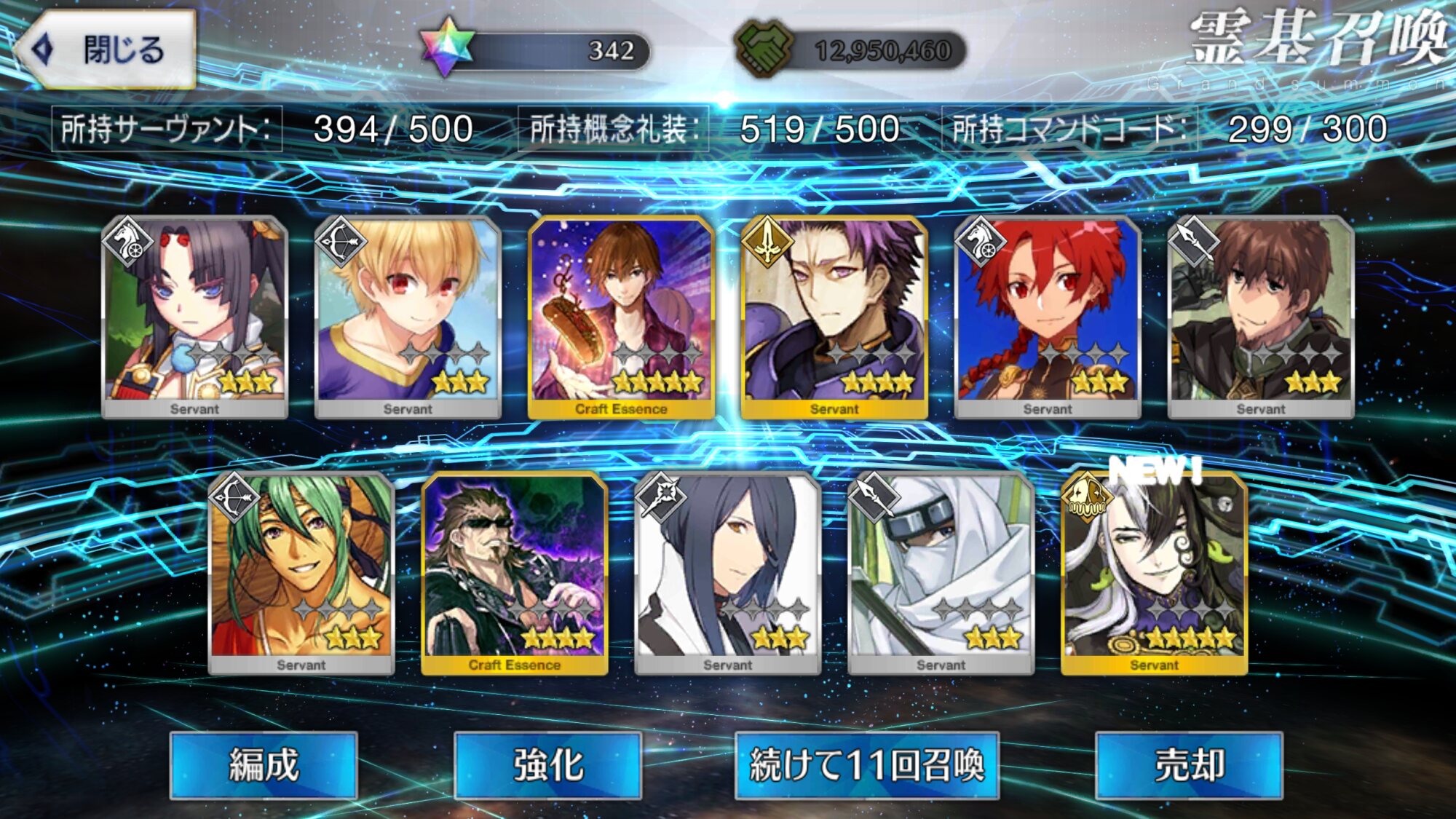 攻撃力UPの効果が上がるらしい11連28回で☆5はアルジュナ1人