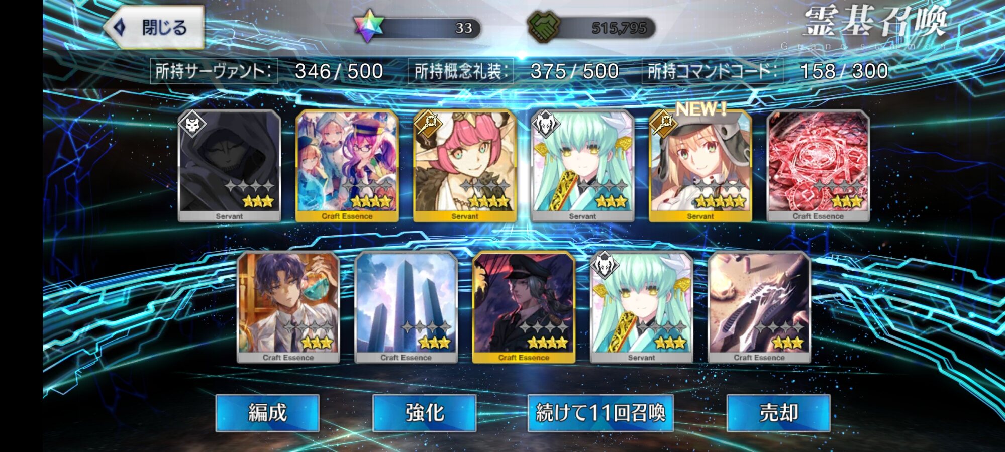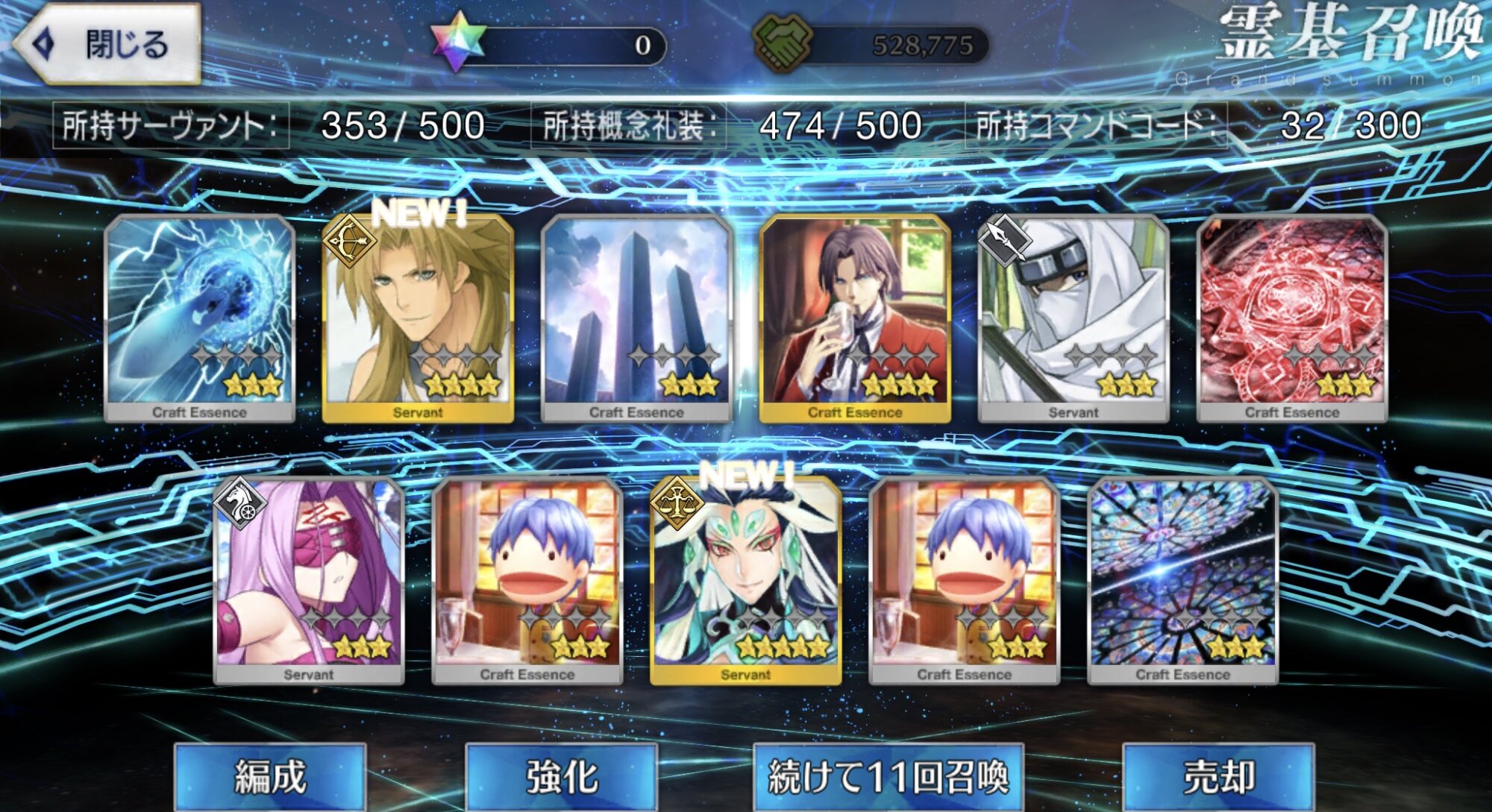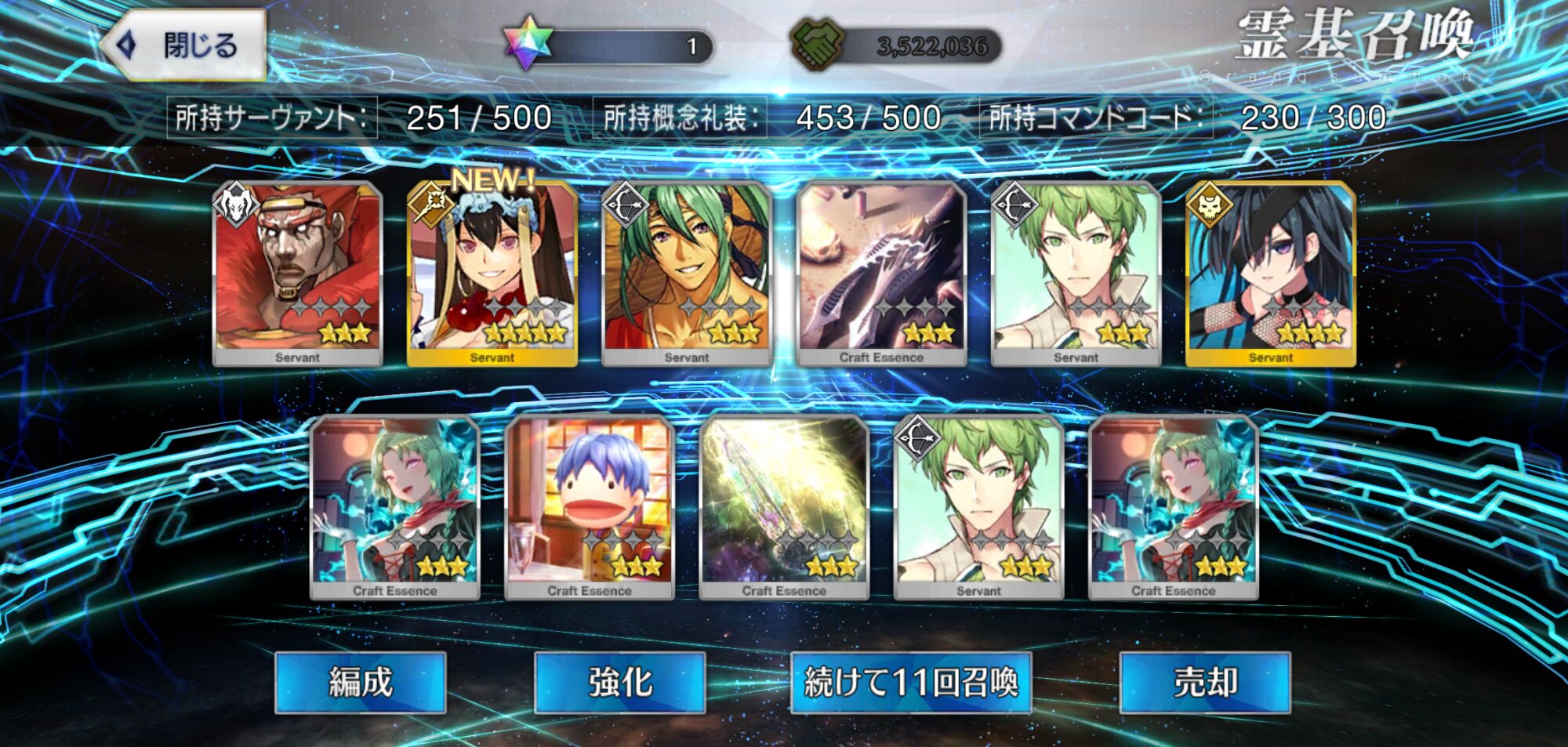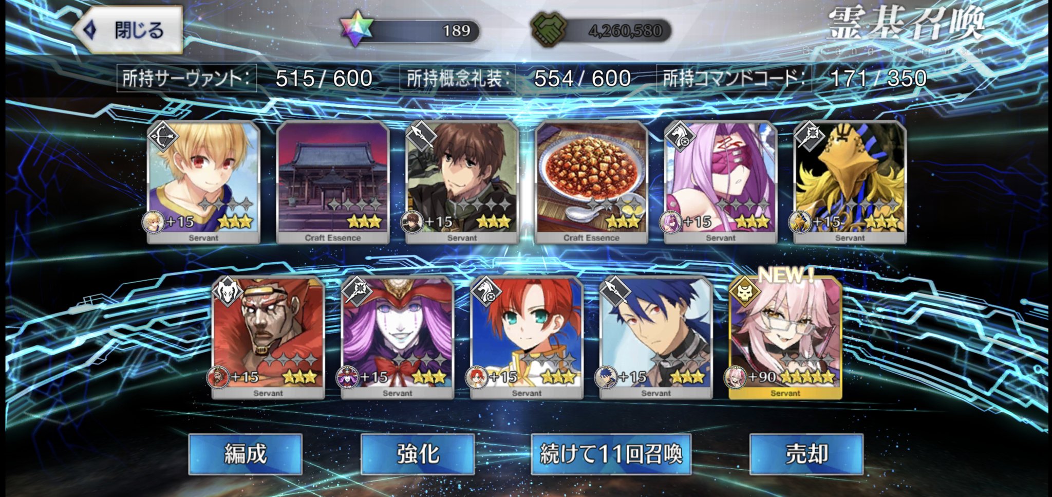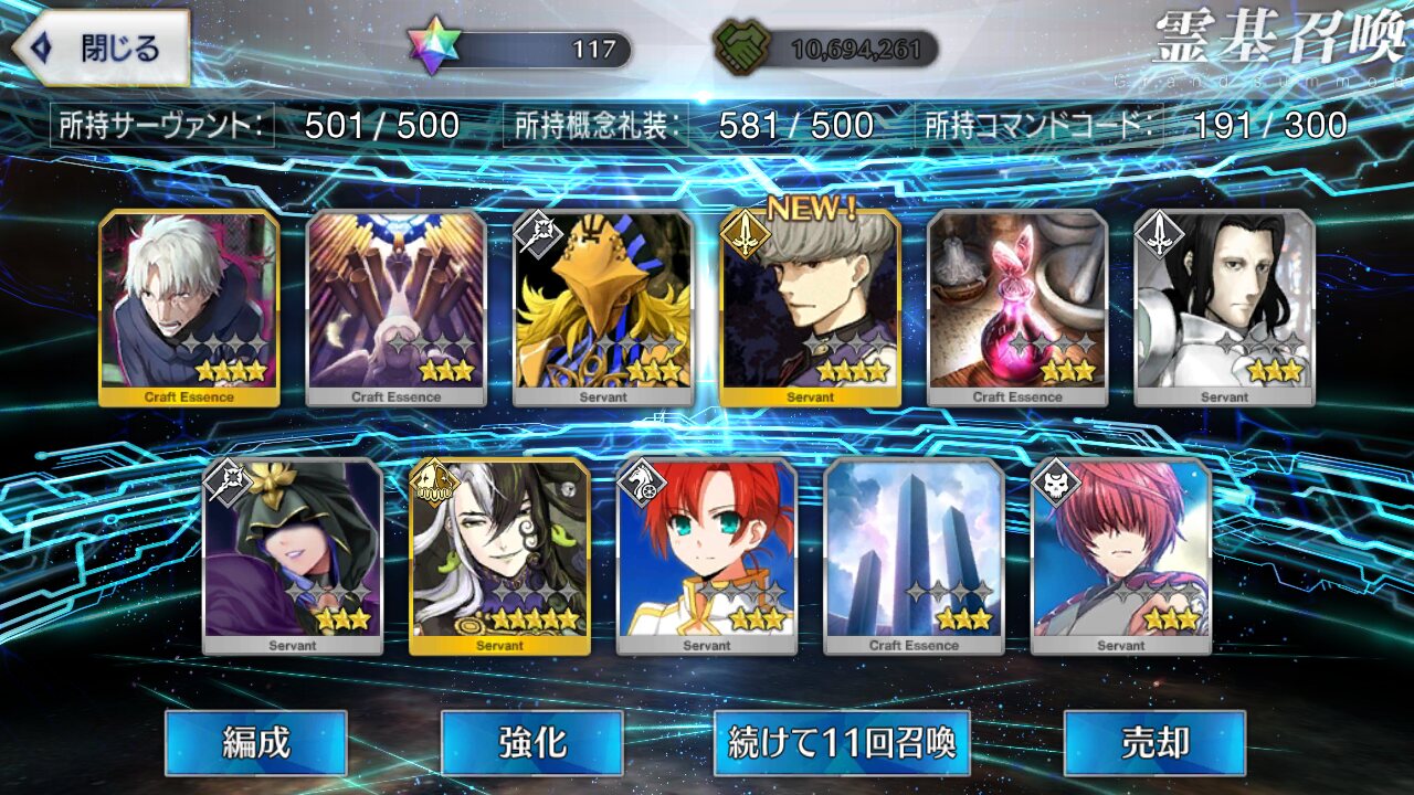 柳生さんの宝具か上がったので良しです画像撮り忘れてしまったが、出血覚悟の最後の11連でカーマとラーマが一緒に来るというダジャレみたいなことが起こった······