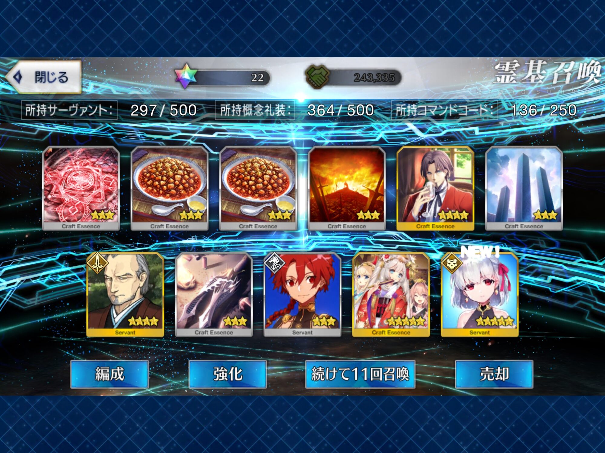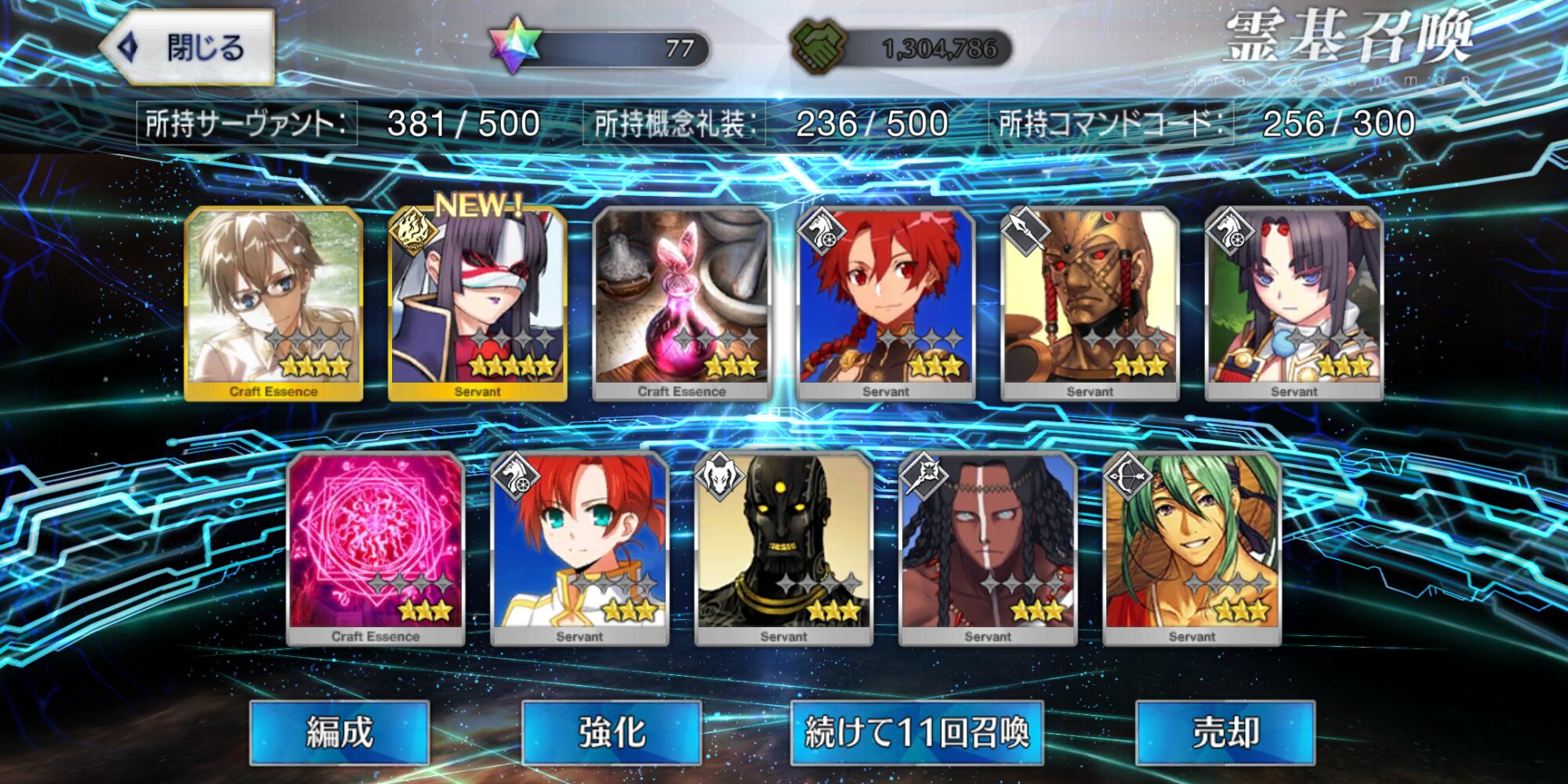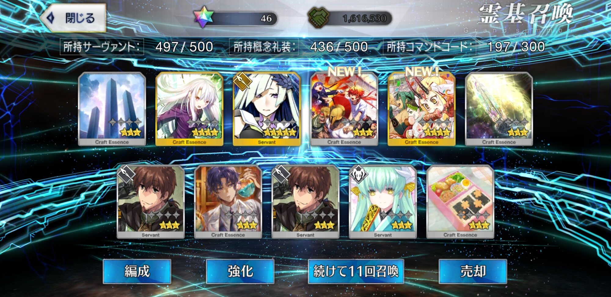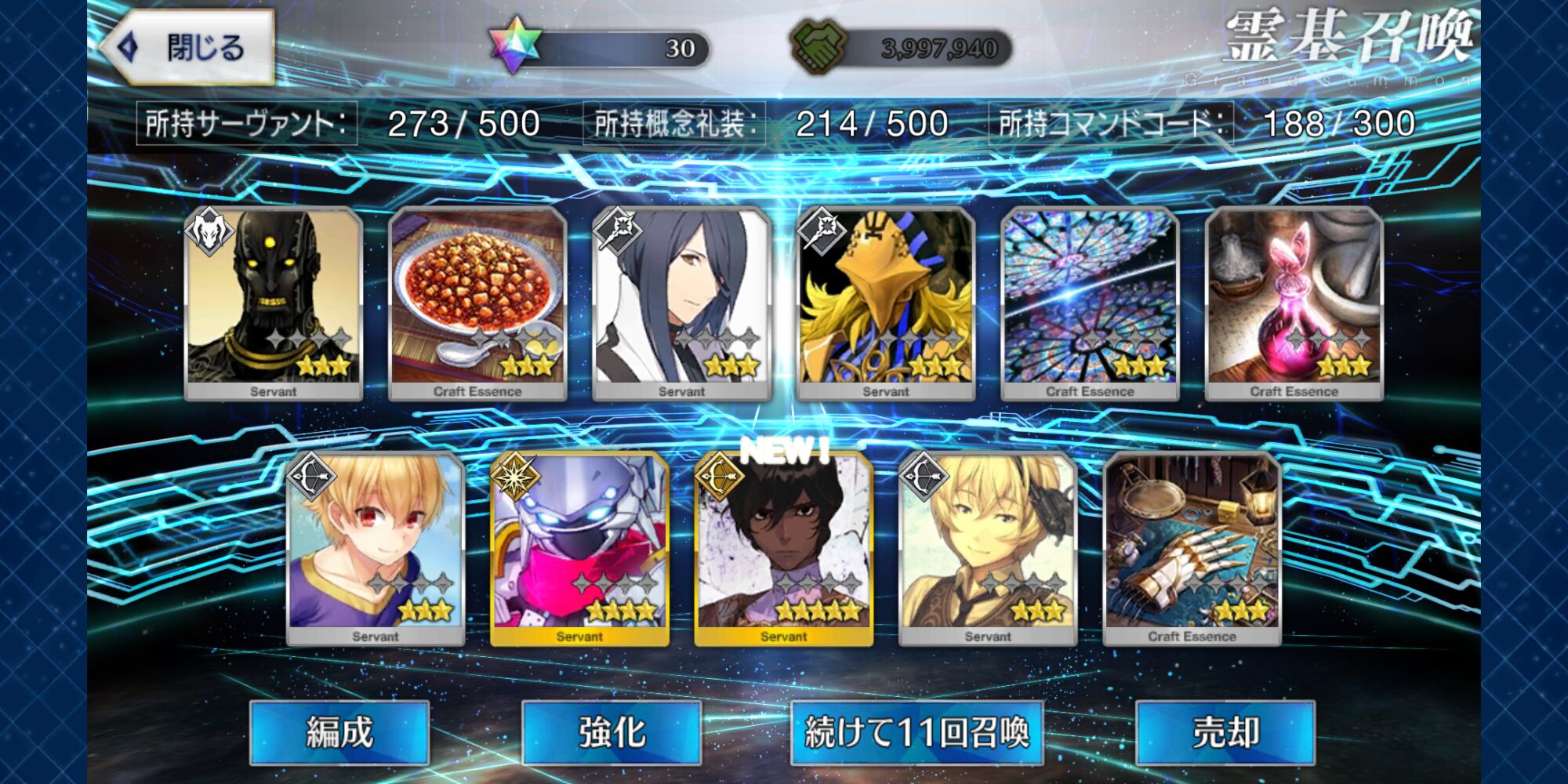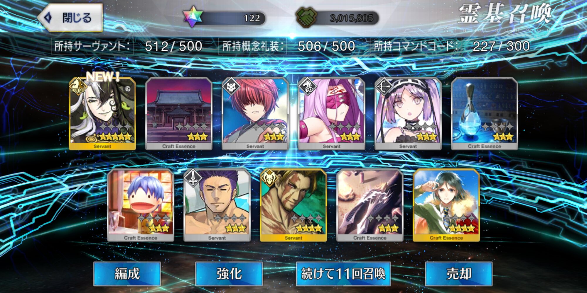 柳生さんの宝具か上がったので良しです画像撮り忘れてしまったが、出血覚悟の最後の11連でカーマとラーマが一緒に来るというダジャレみたいなことが起こった······