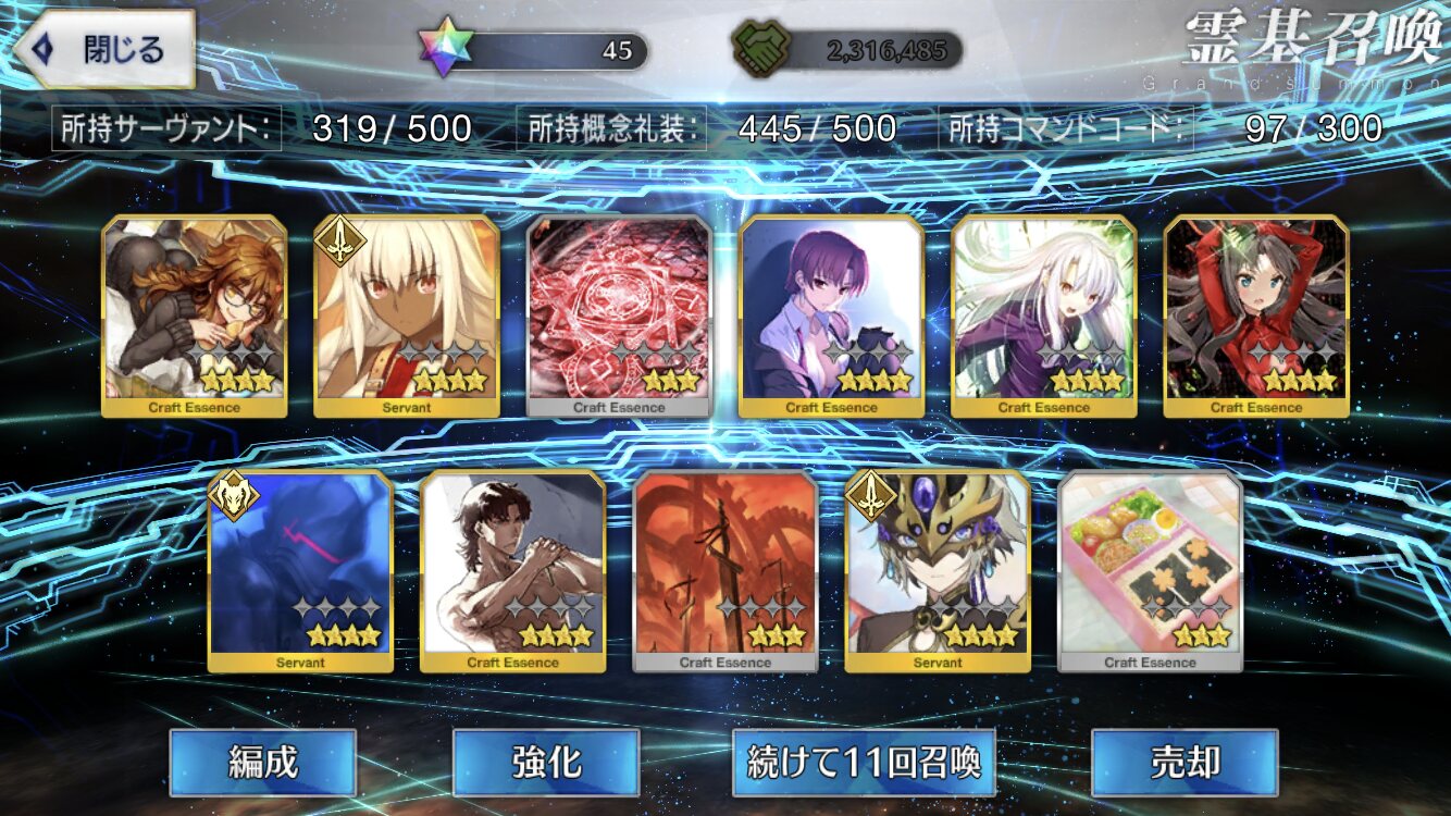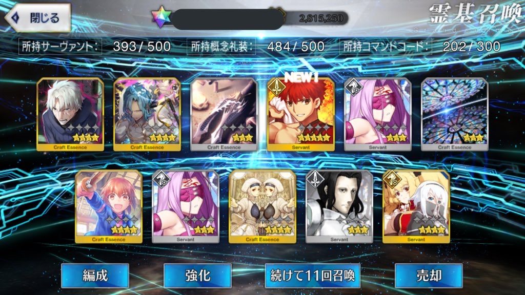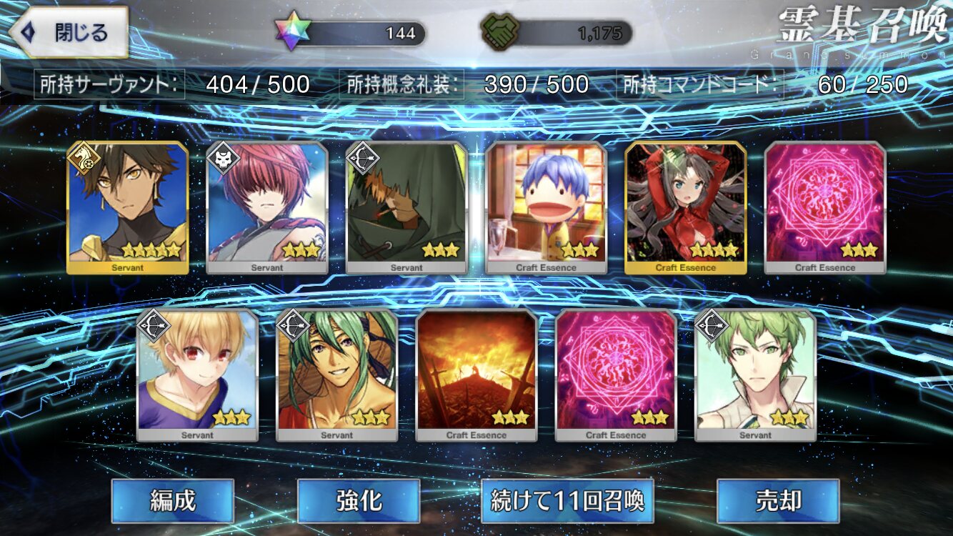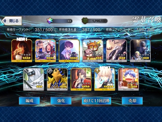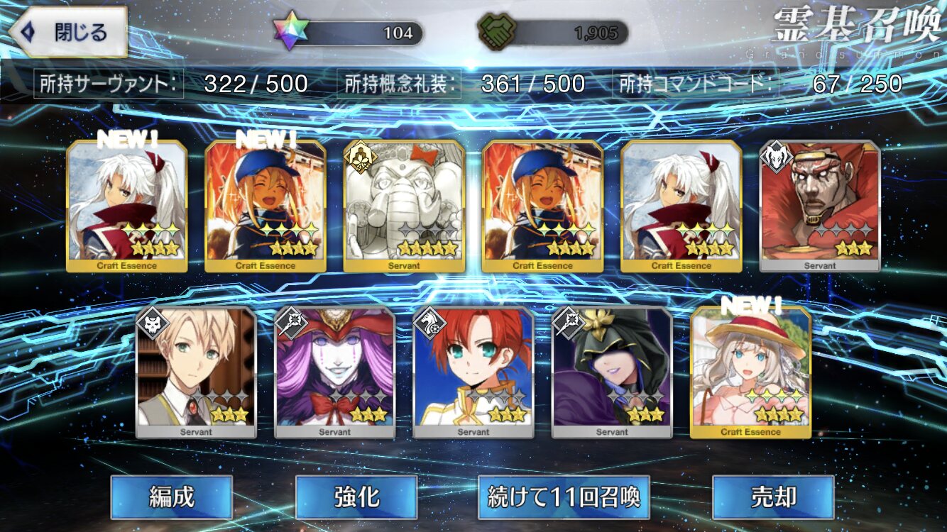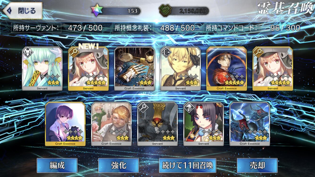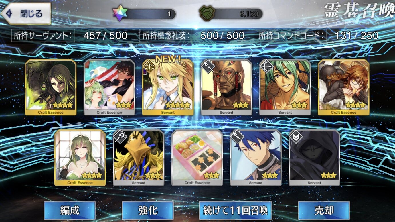星5礼装がすり抜け込みで0だったのはなんでだろうなあためてた全部、150連で
