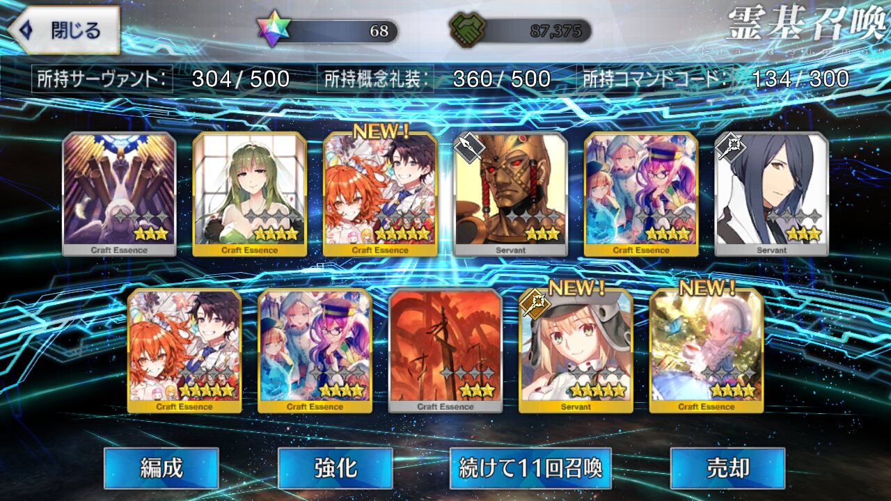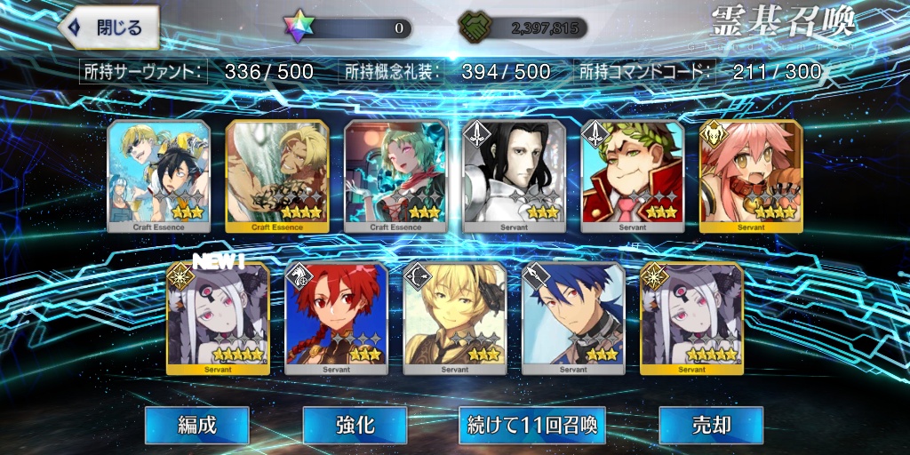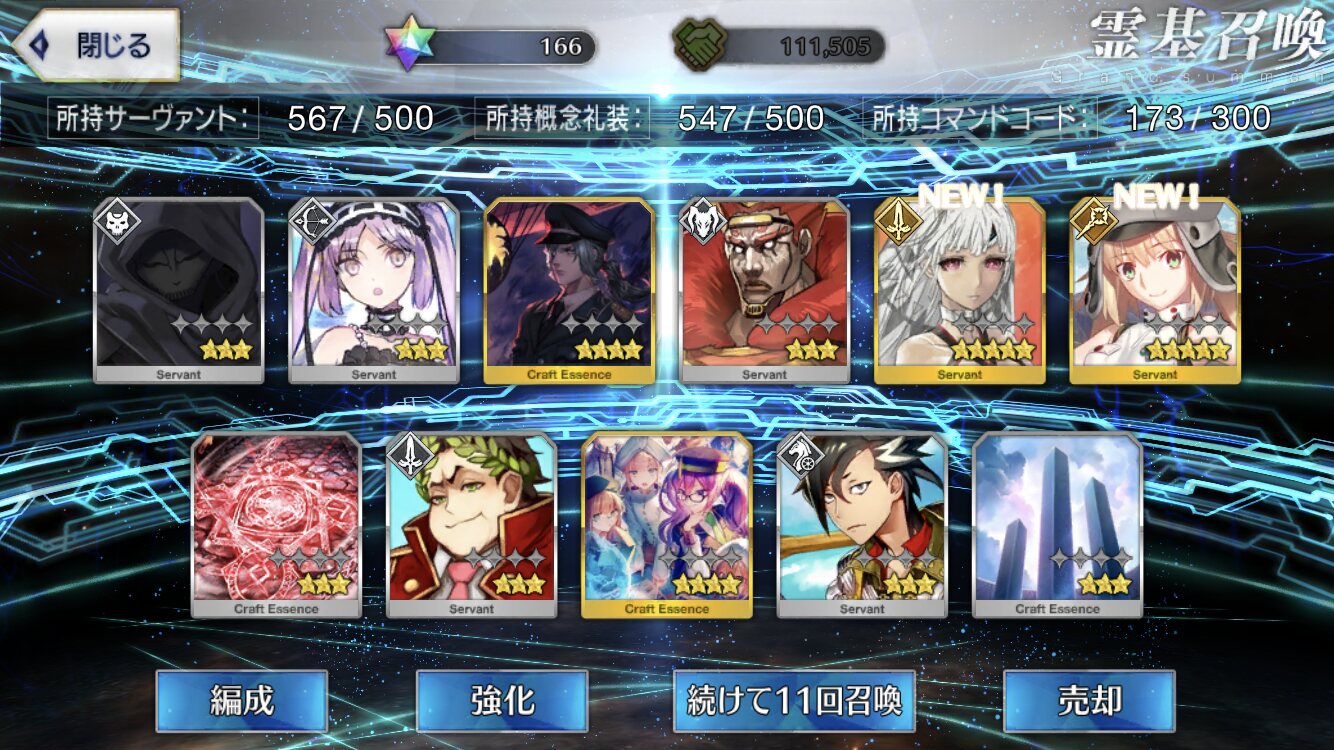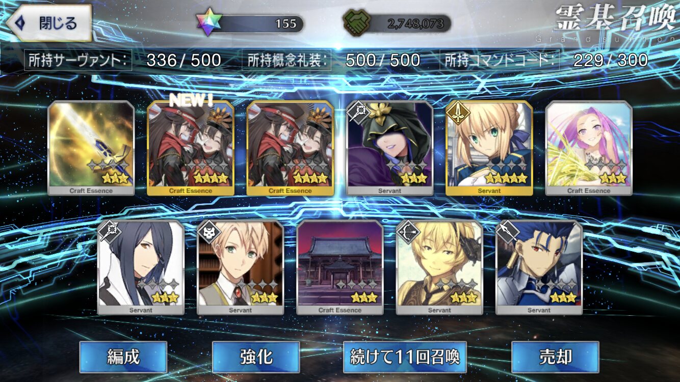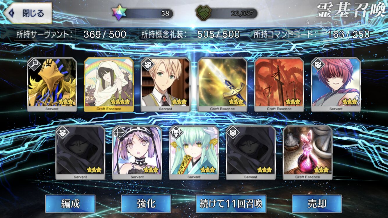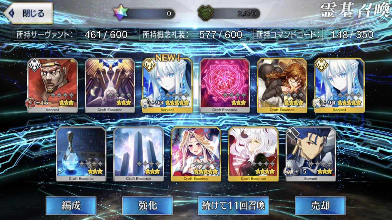星5礼装がすり抜け込みで0だったのはなんでだろうなあためてた全部、150連で