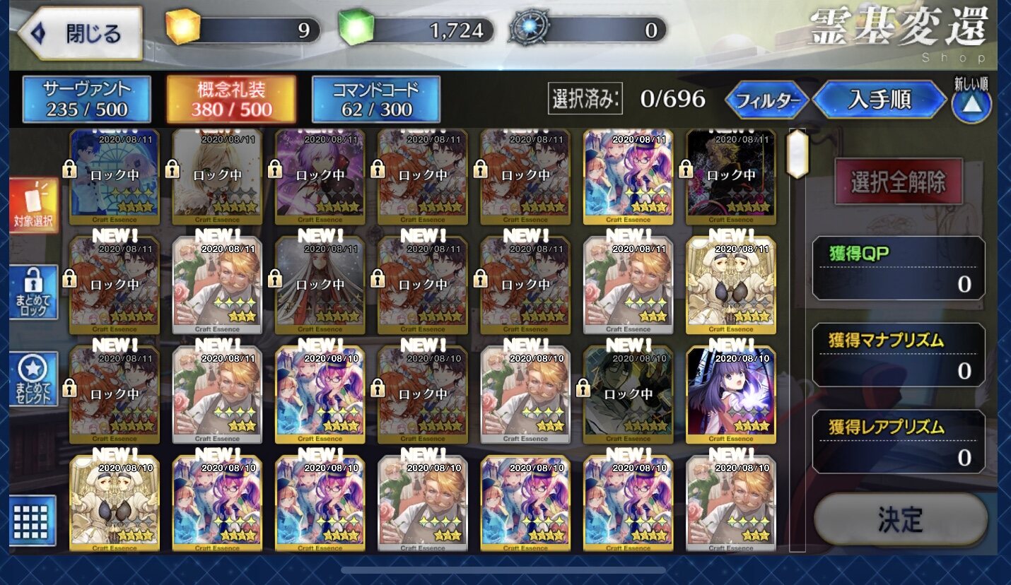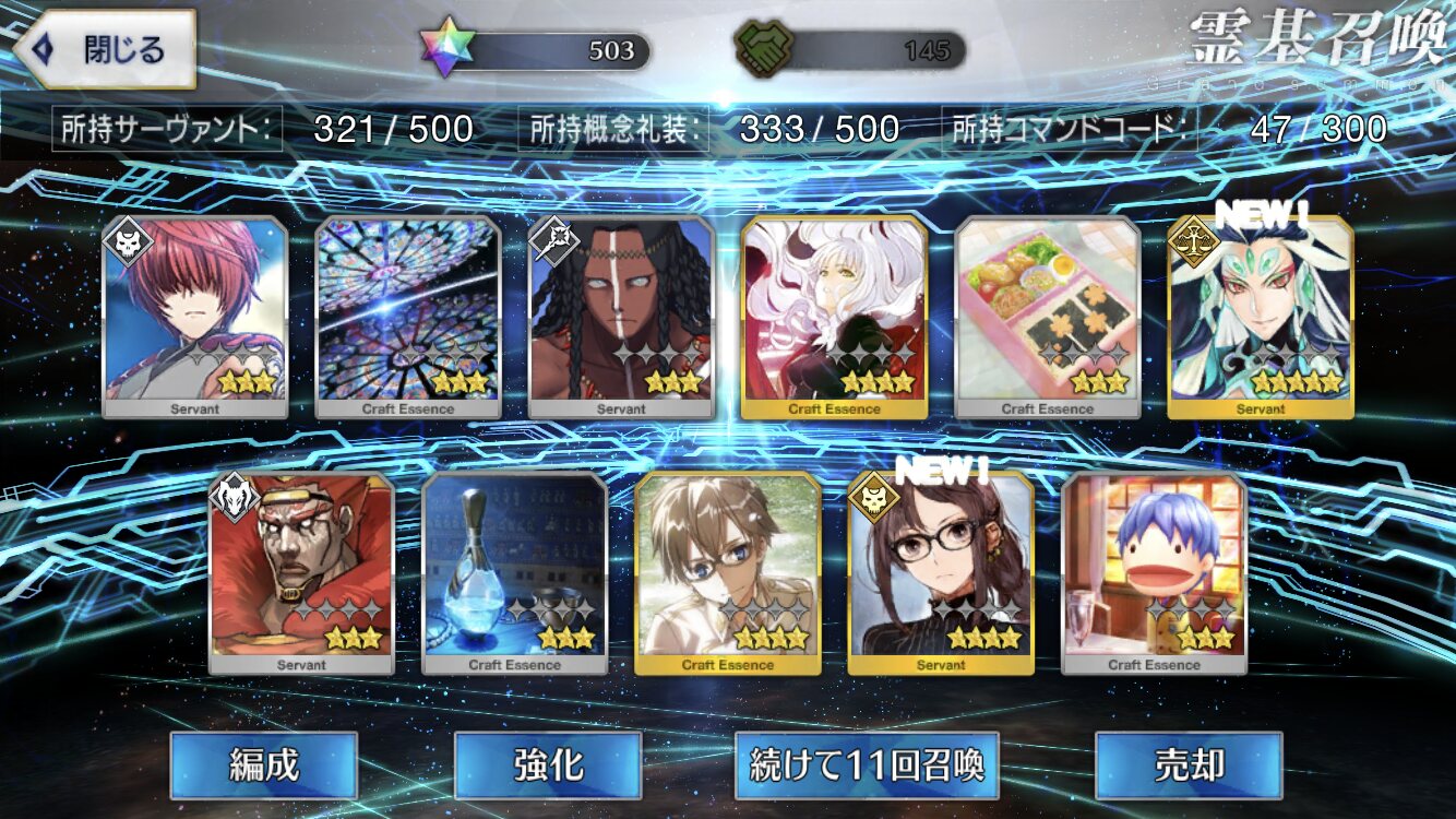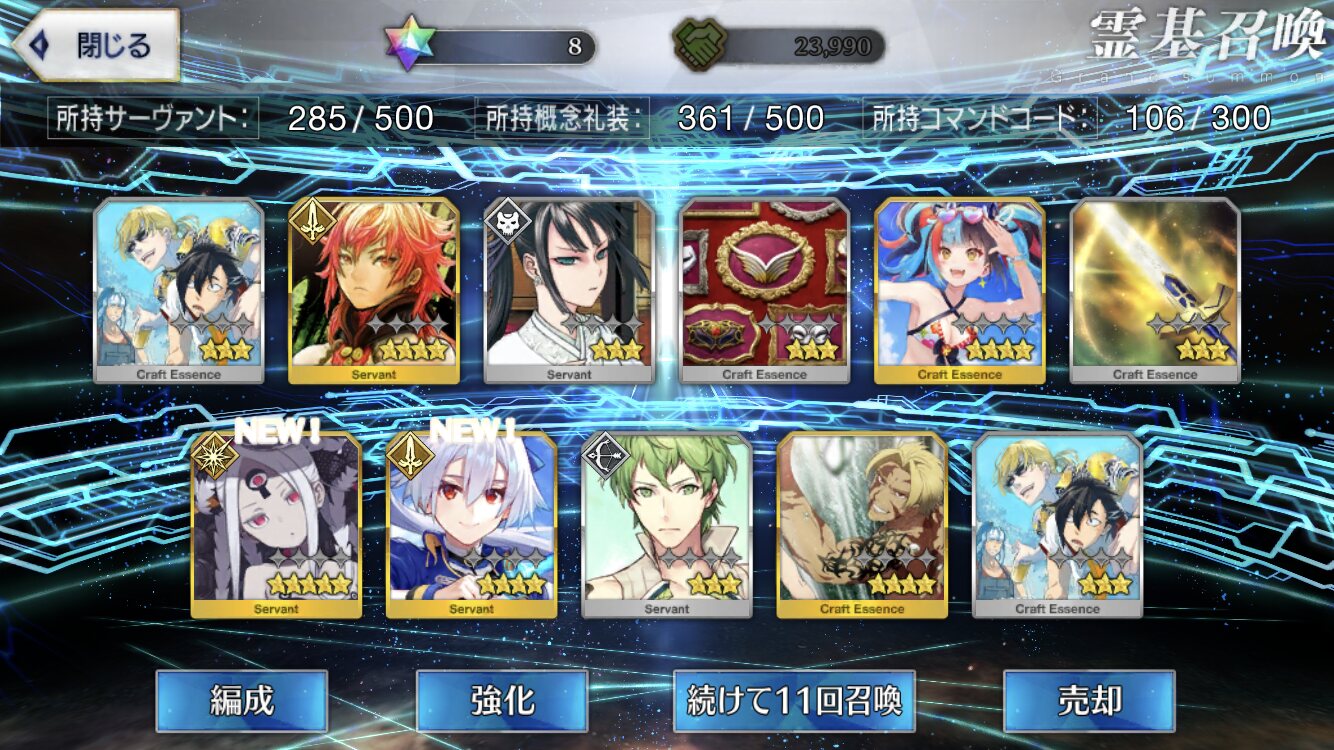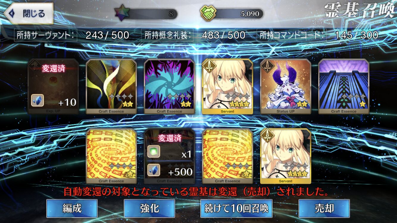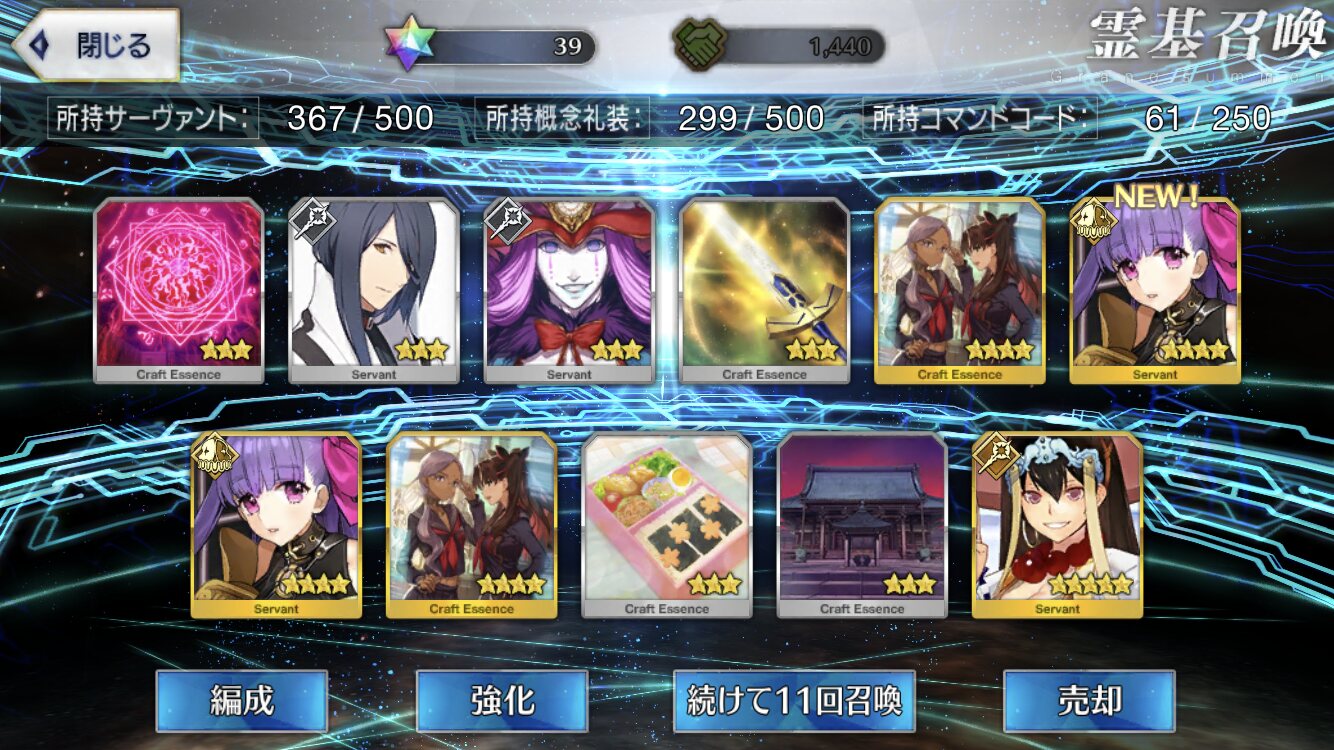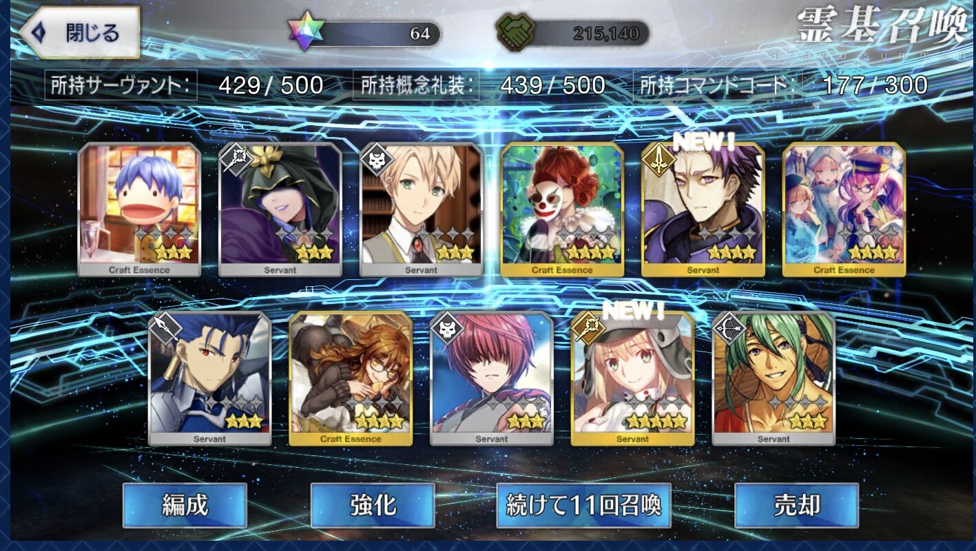 星5礼装がすり抜け込みで0だったのはなんでだろうなあためてた全部、150連で