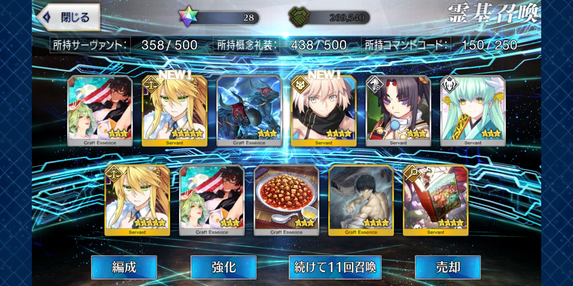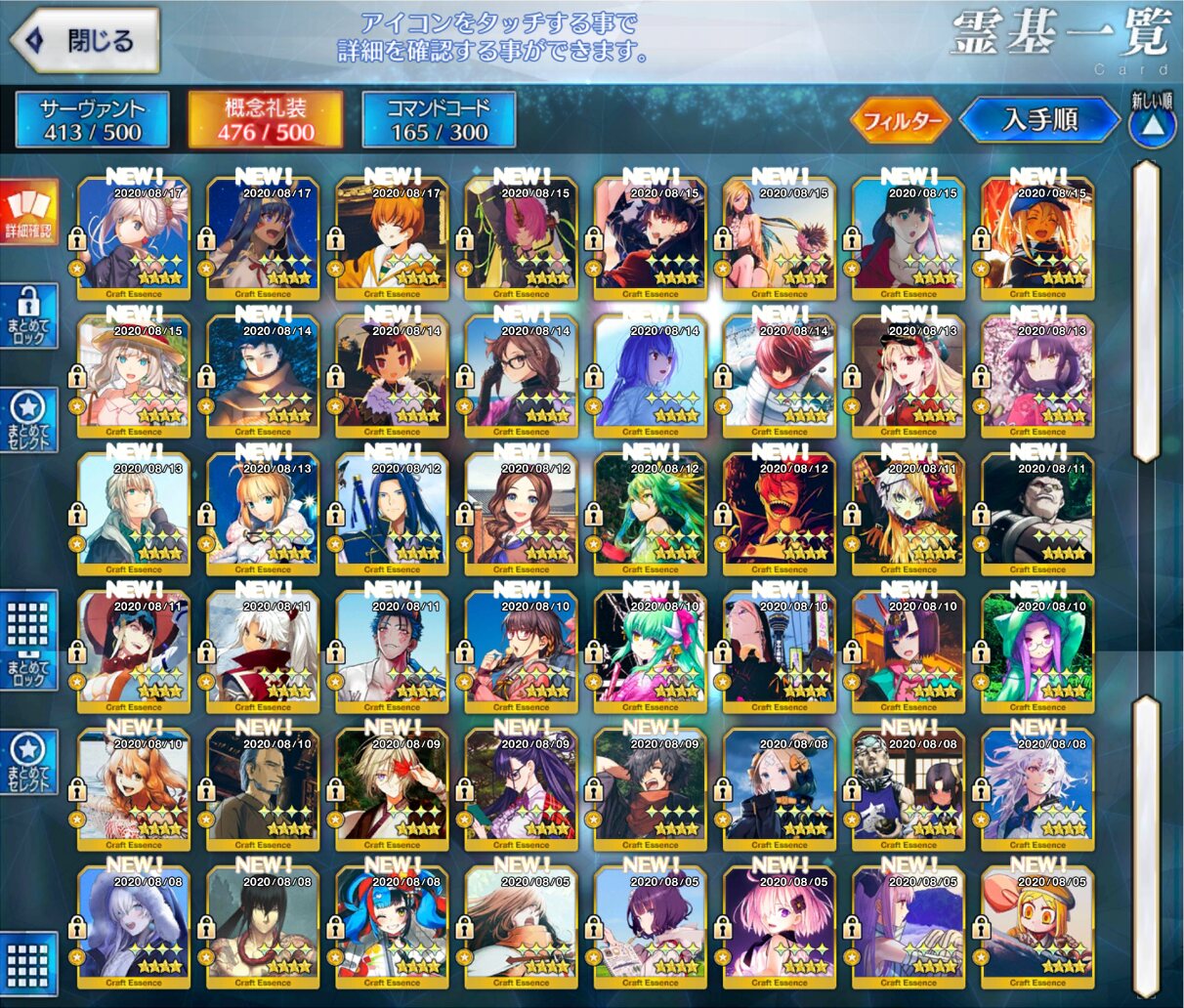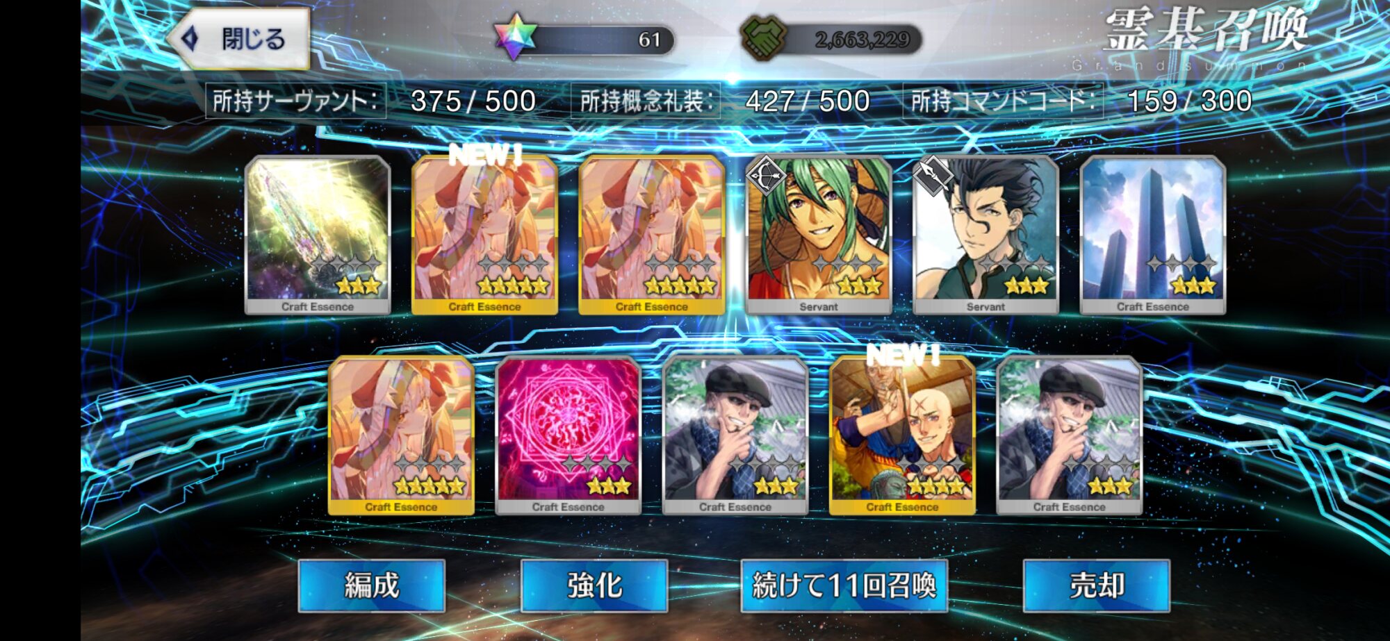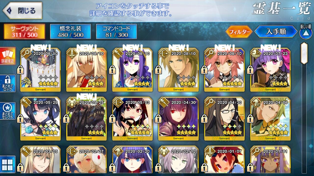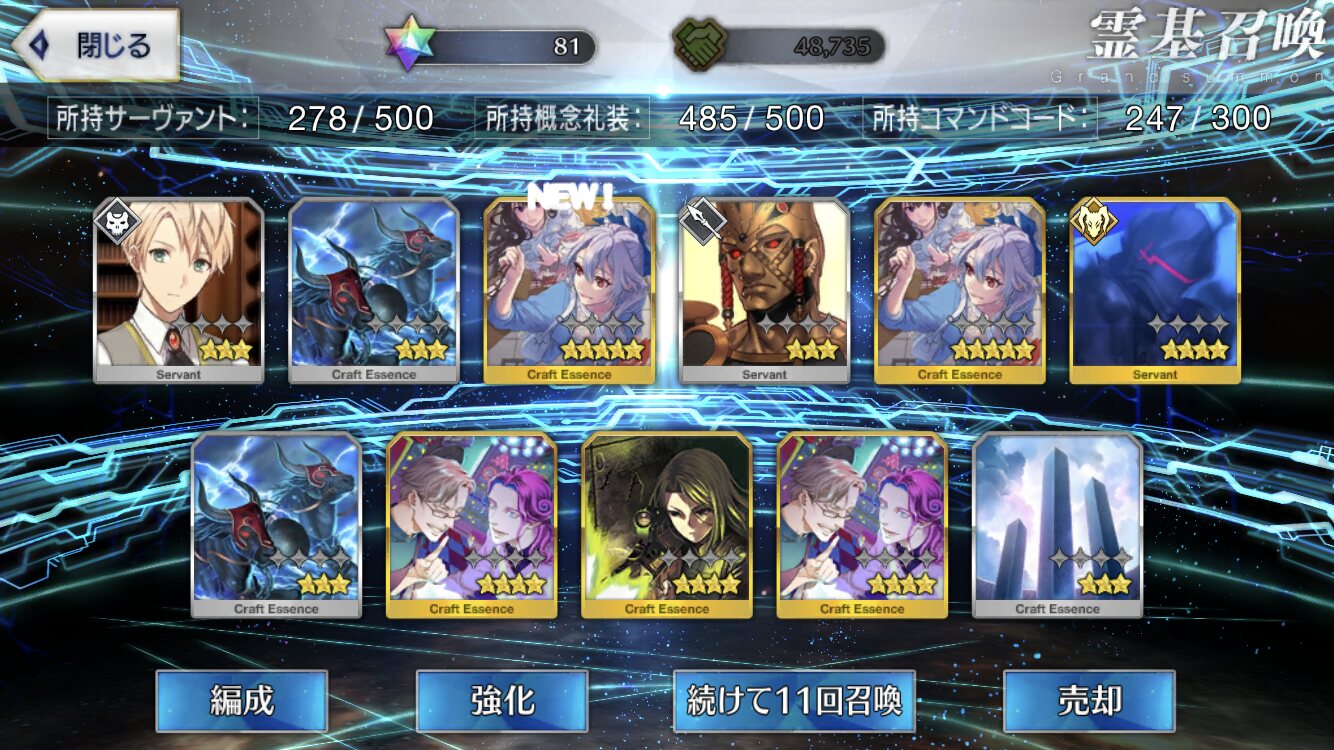 星5礼装がすり抜け込みで0だったのはなんでだろうなあためてた全部、150連で