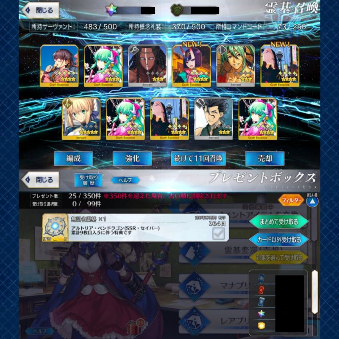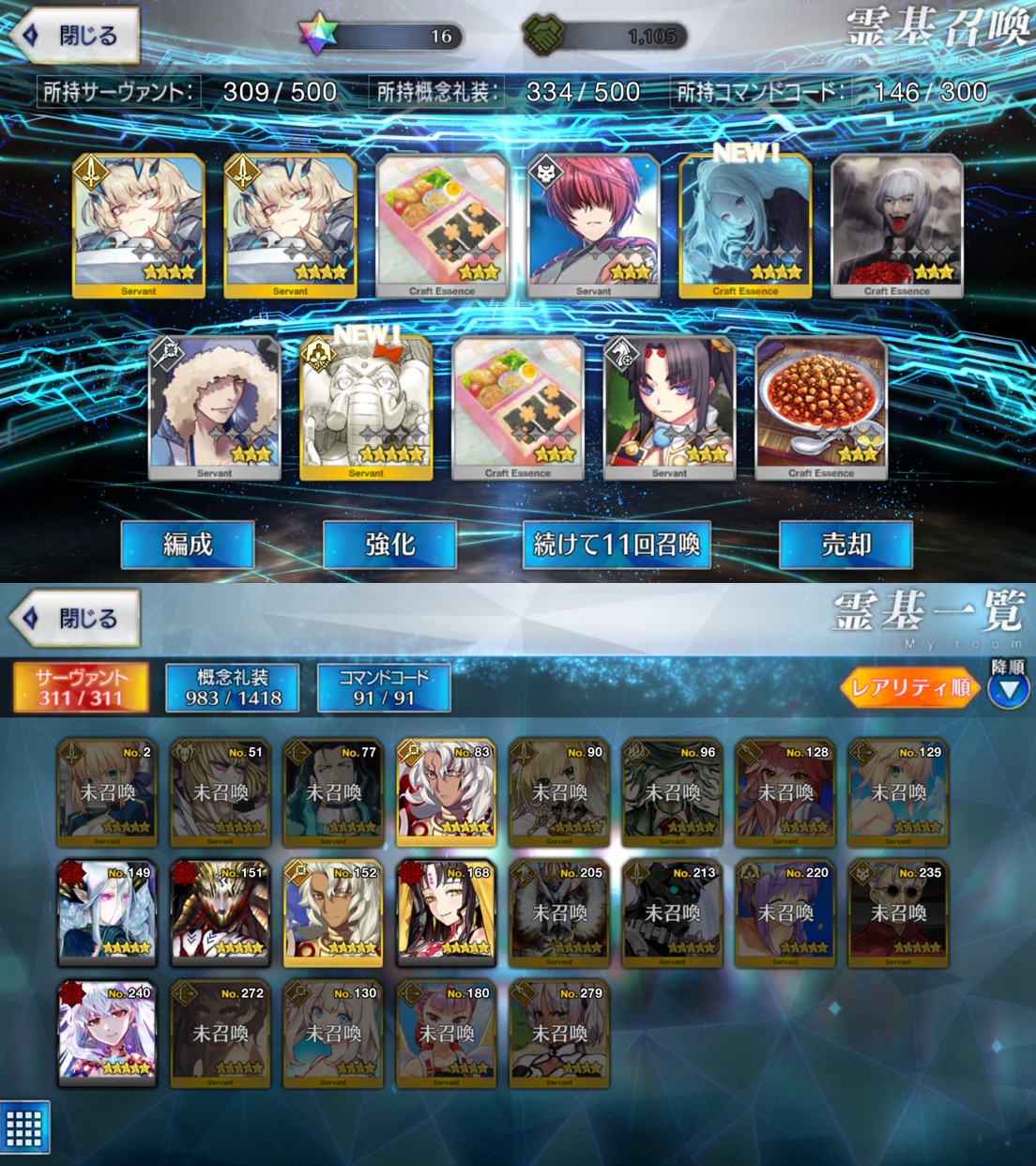 なんなのうちのガチャは☆4鯖2.5%くらいなの??昨日ライネス爆死したけど、マイルームに二世、ターミナルにグレイちゃんを置いたら11連で来てくれた