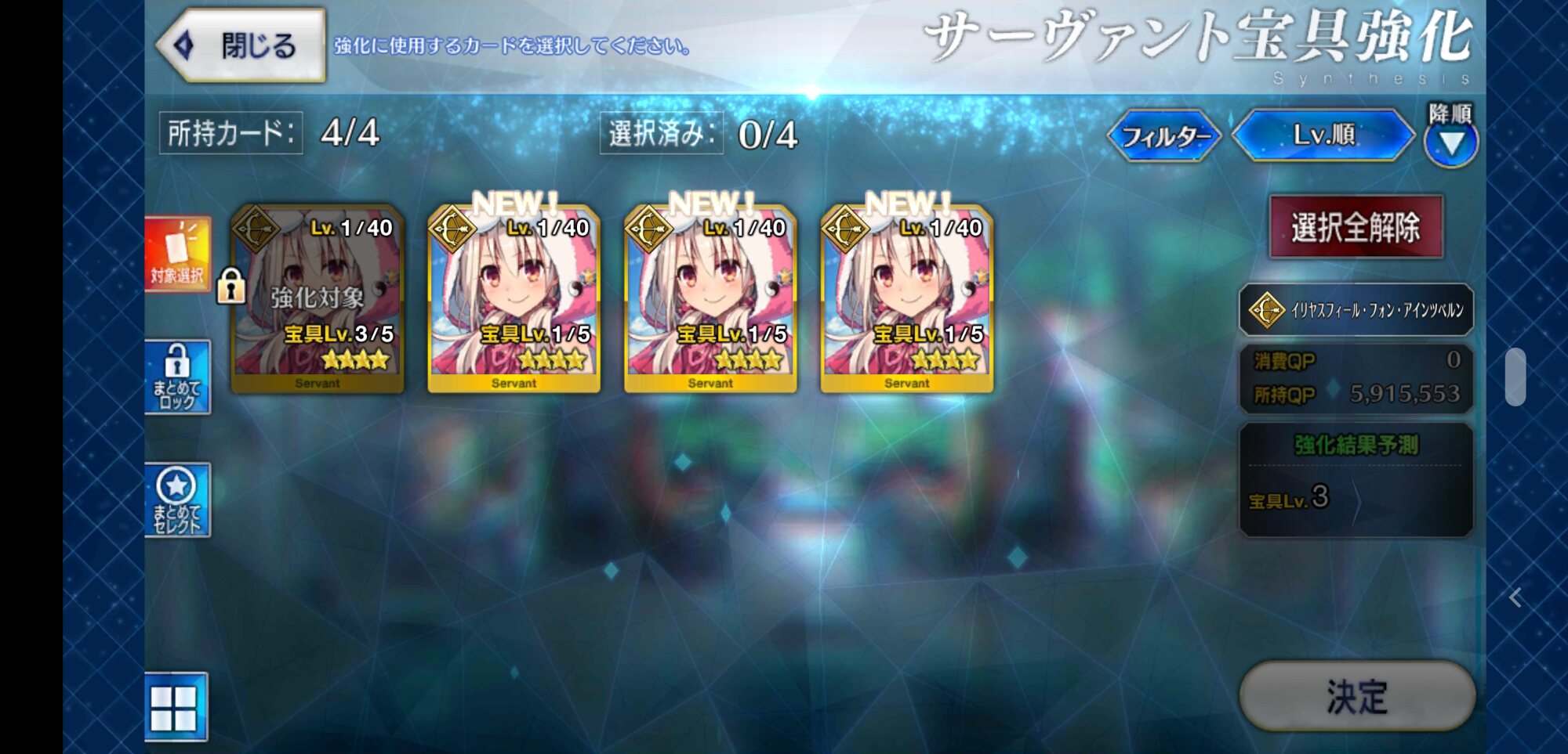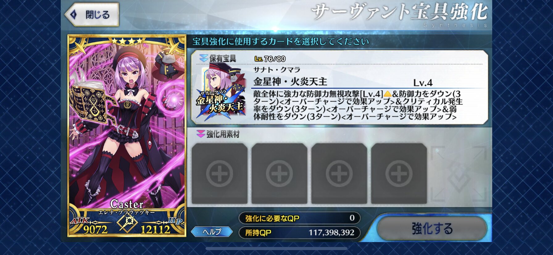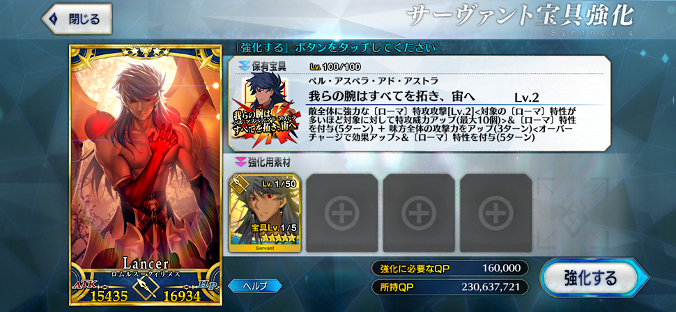 キャストリアさん宝具4までわりととんとん拍子で強化できたし