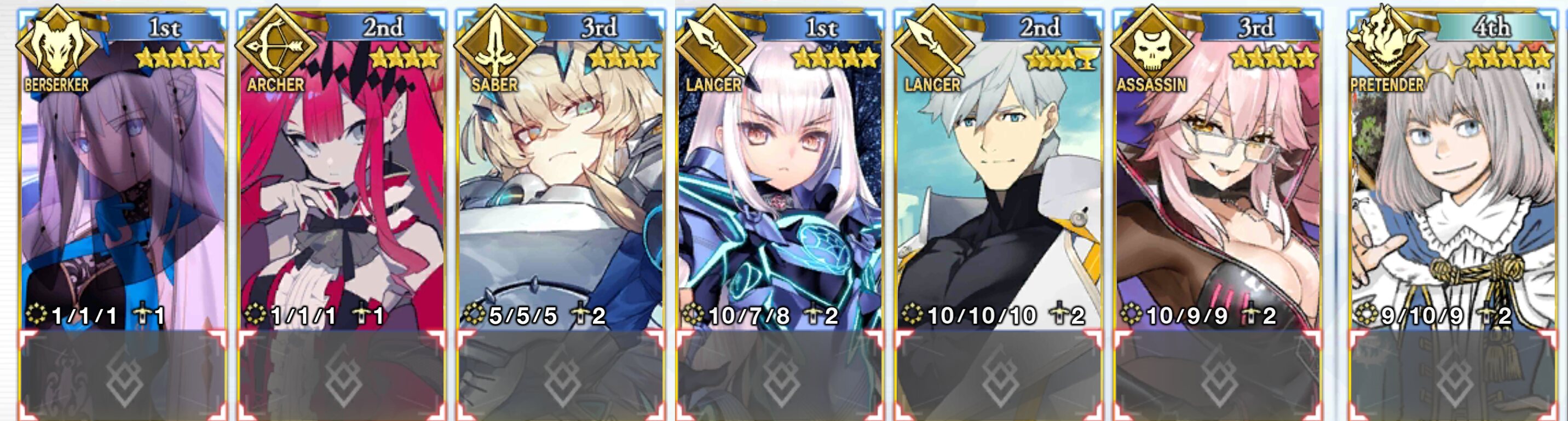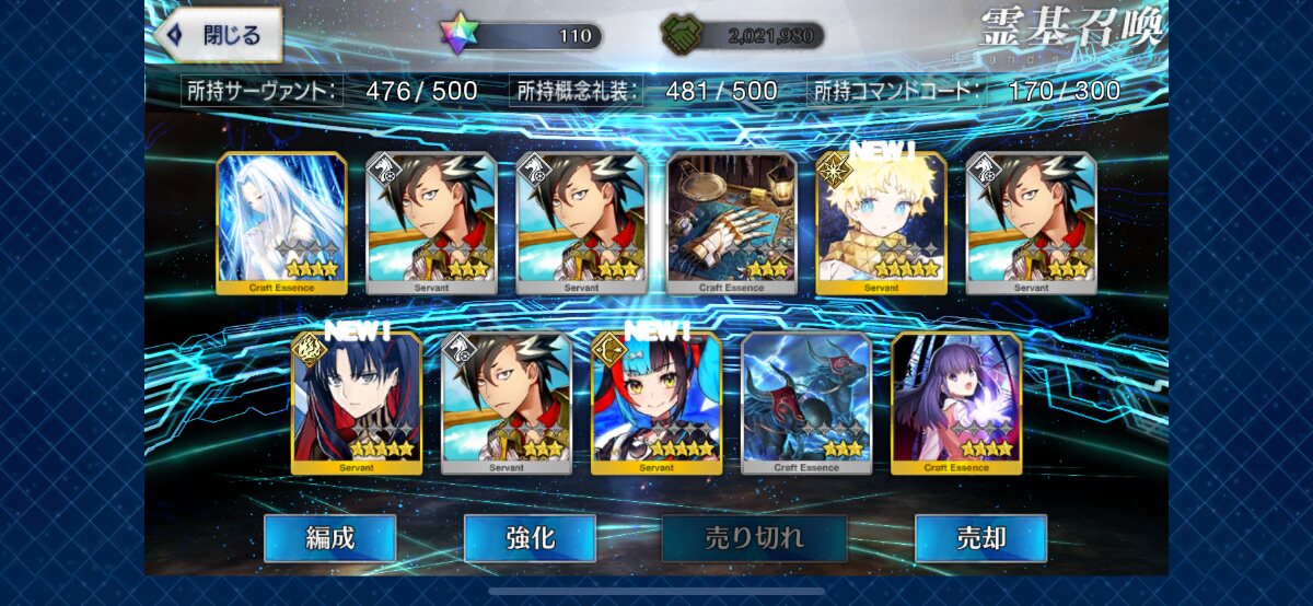 これでクラス別福袋の選択肢が絞れるがぁぁぁ!!!まぁ記念にって気持ちで10連したら初手金枠初カーマだったのにスクショ忘れてたぁぁぁ!!!!