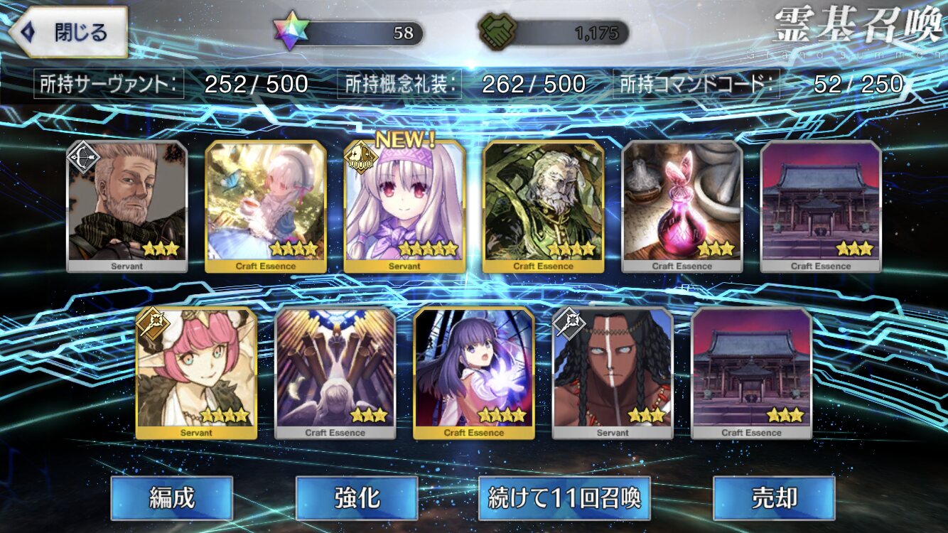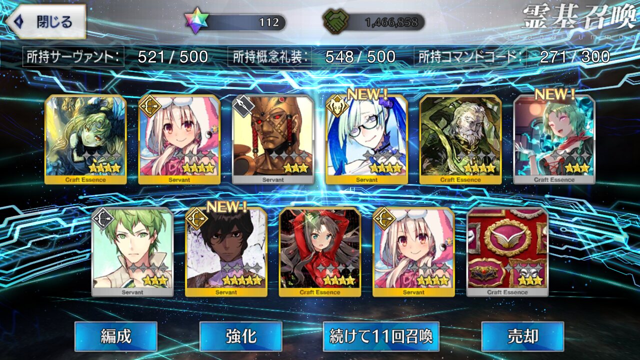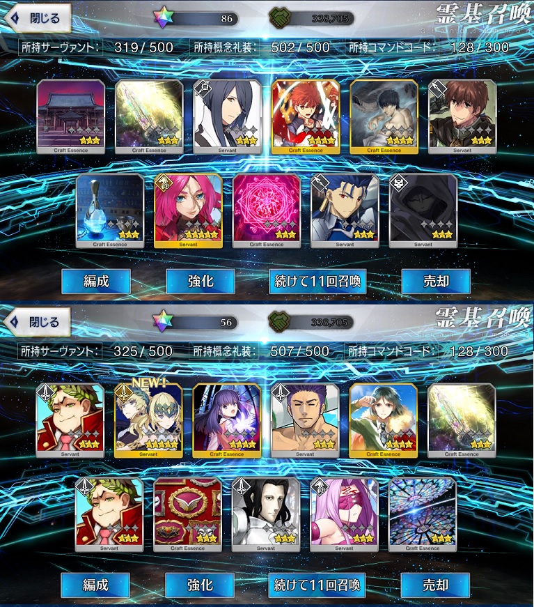 それ以前にもおおよそ55連ほどだったかしてイリヤ二枚を得て、今回180個ほど石を用意して66連してみたものの大爆死