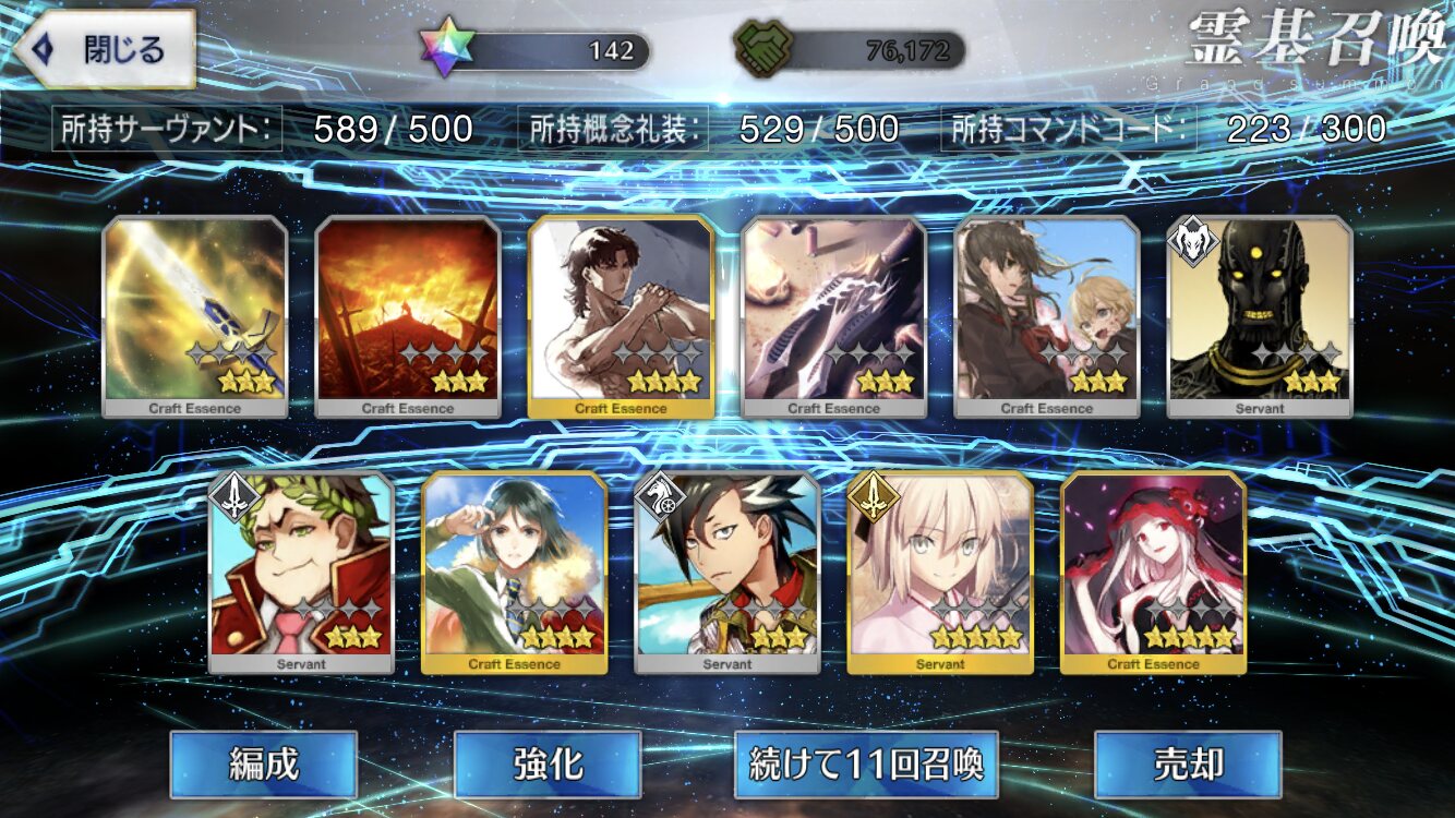 ガチャしんどい…コヤン狙いで170連して被りの星4が10人くらい来ました