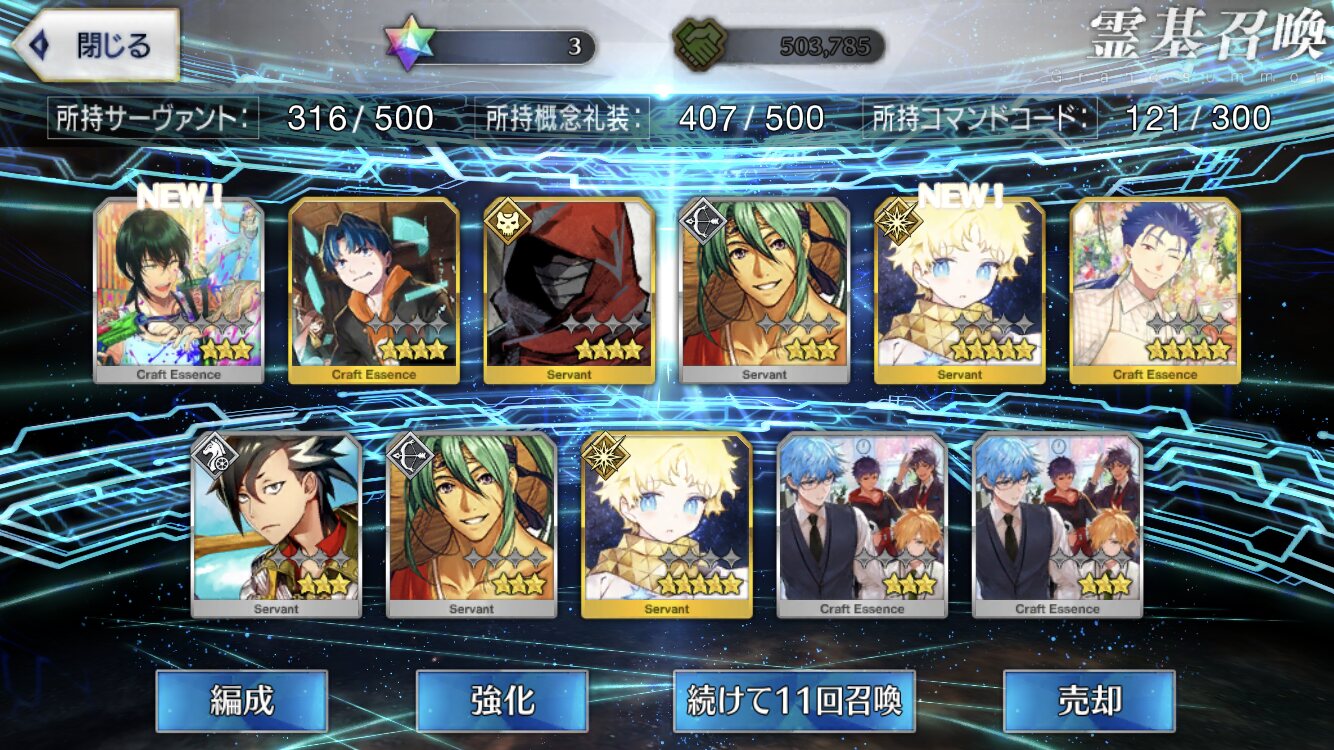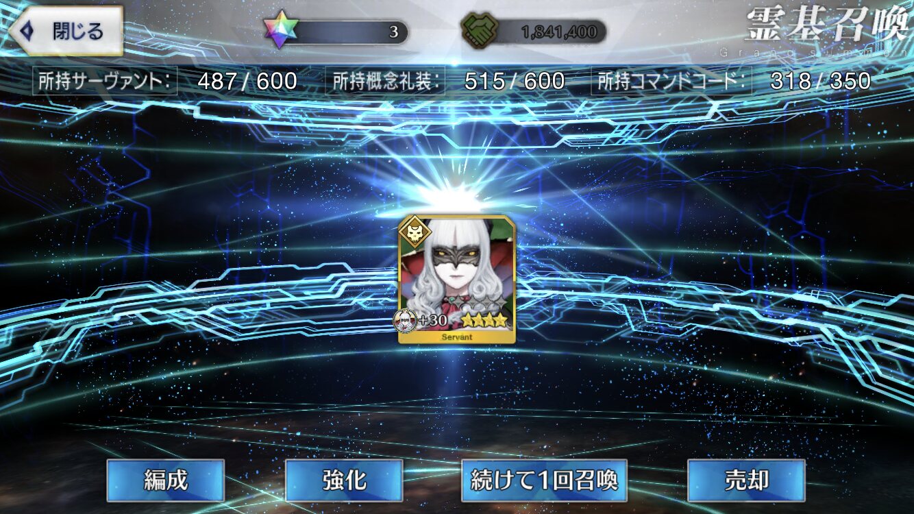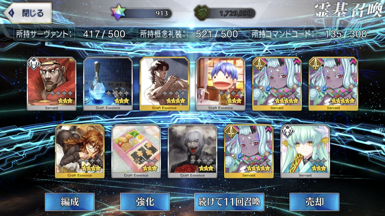 なおキャスニキは引けなかったもようスクショ忘れたけどオベロン3枚抜きキタ!