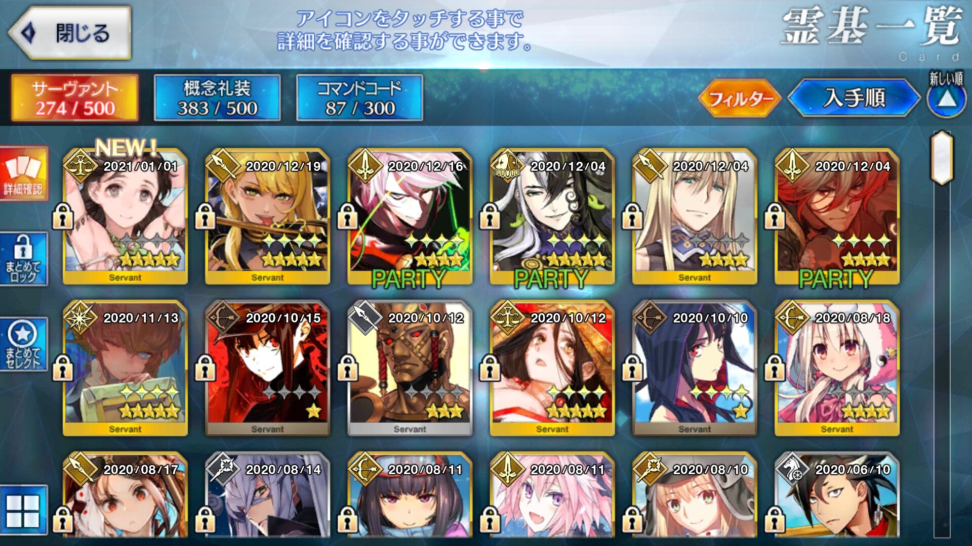 去年の事件簿で有償石90残して呼符0から貯めてスカディ様で呼符100枚、福袋で石30以外は一度たりともガチャ引かなければ貯まる並んだマイフレンドがちょっと面白かった。