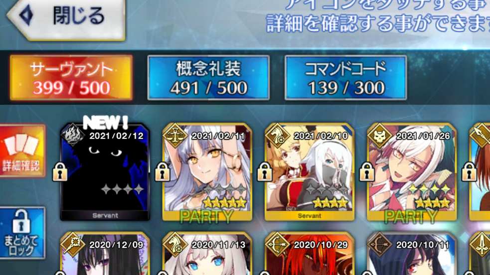 トータルで414個貰って呼符15個消費して、星5鯖0体、星4鯖2体(どっちも既に入手済み)、めっちゃメンタルにくる。すり抜けさえない…マジで大爆死。泣いていい?