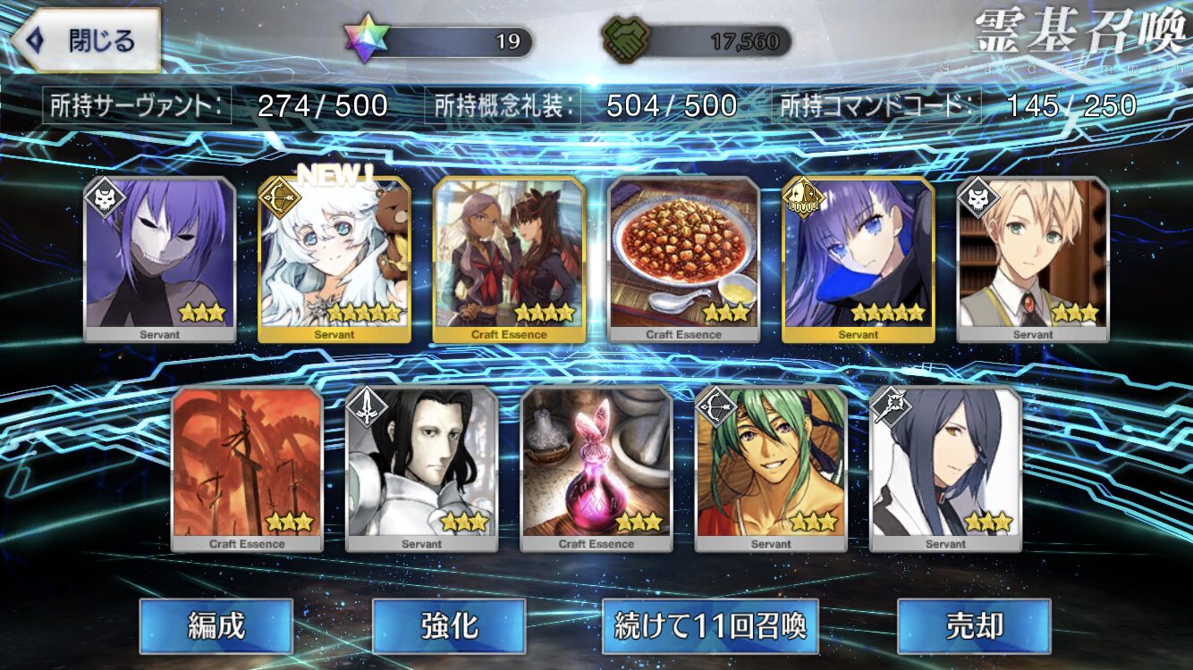 張り損ない中途半端に余った石の単発でなんとかお迎え成功したけども、ラスト20連でのバチバチ演出からのアストルフォ×2はさすがに心折れかけたよ…