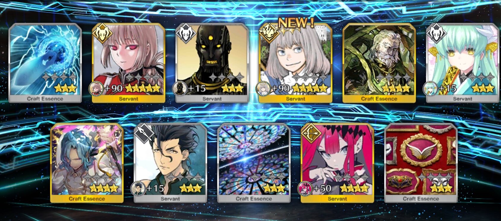 後半のためにこれ以上の課金は諦めて撤退したものの本心としては諦めきれず、呼符十枚を使って「これでダメなら諦めよう」の思いと共に回したら吃驚仰天