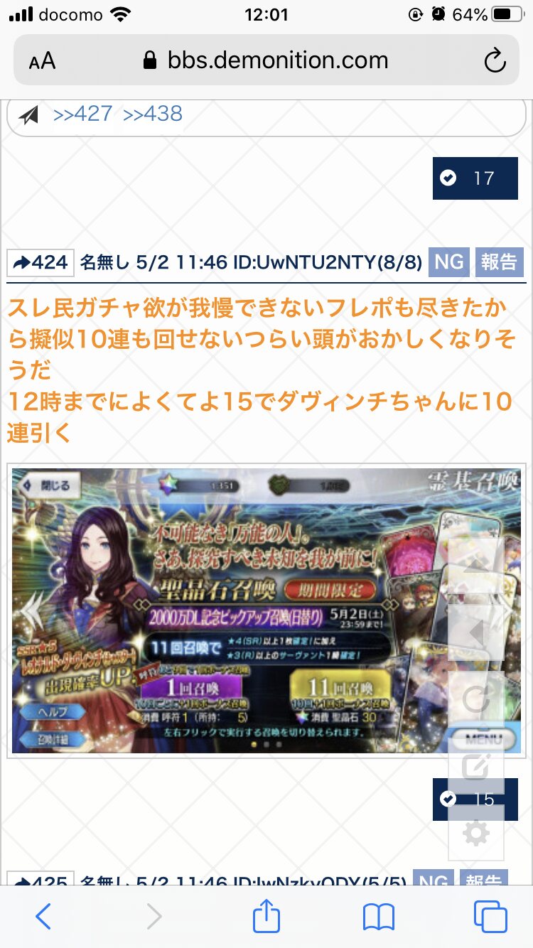 ガチャ報告スレッド その5 https://bbs.demonition.com/board/3493/