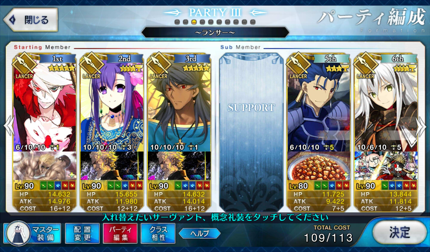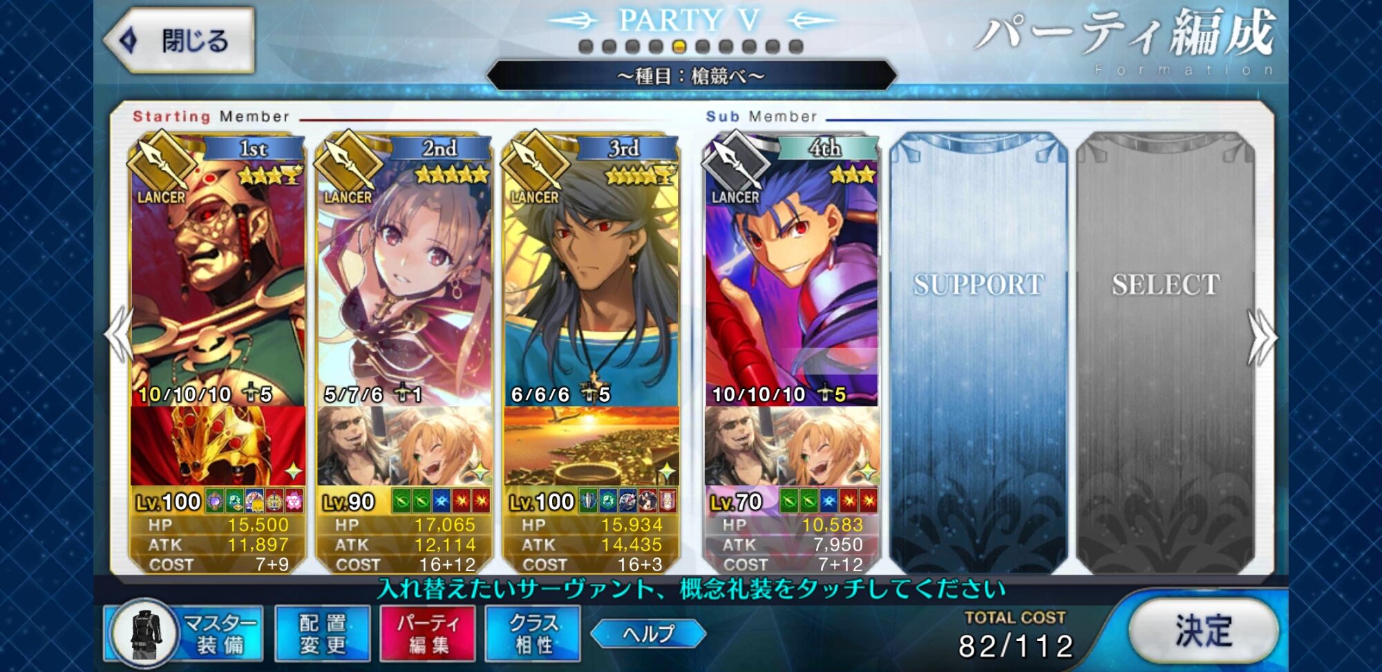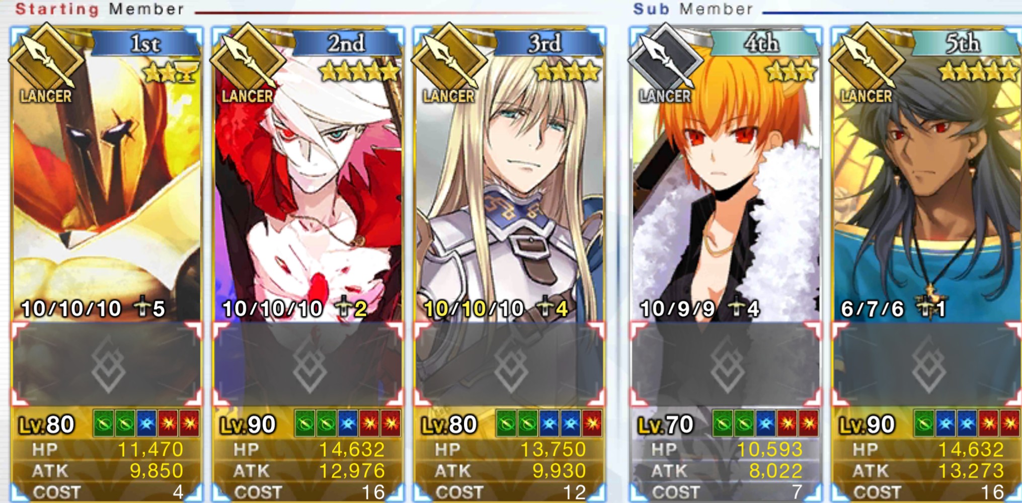地→血何とか5人まで推しランサーを絞ってきたよ。