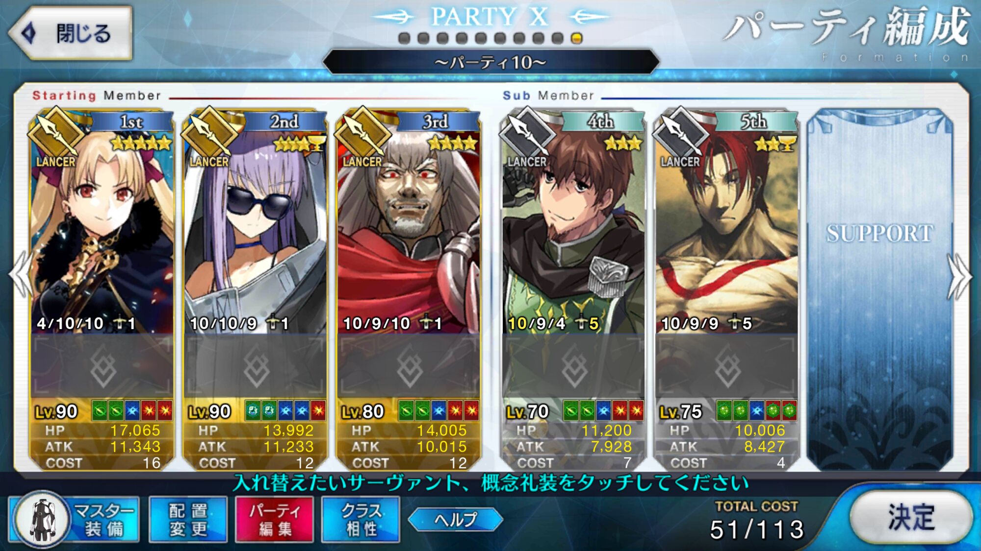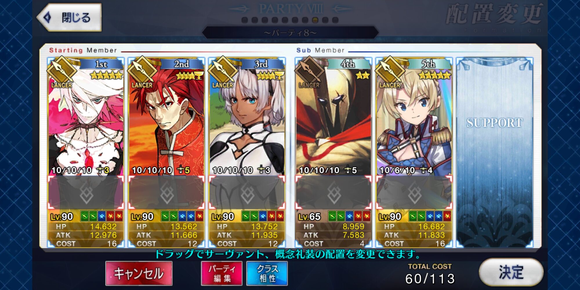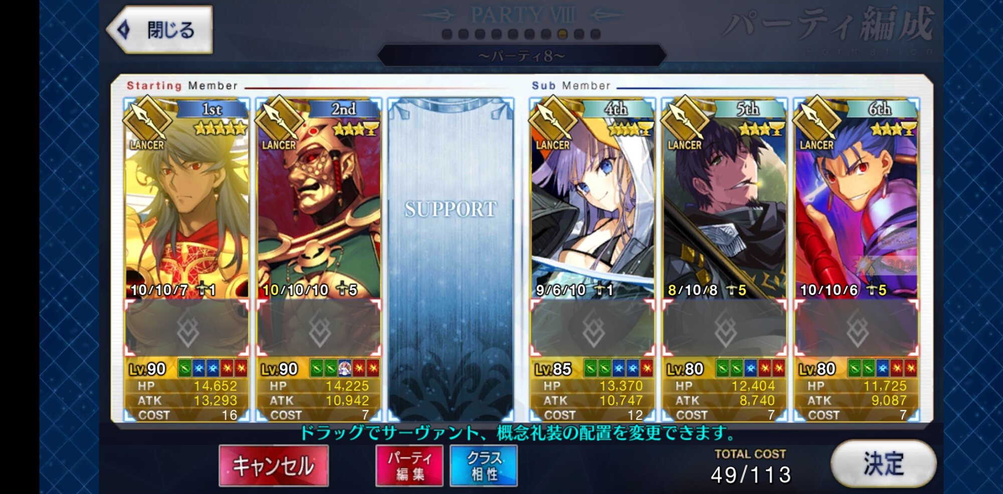 地→血何とか5人まで推しランサーを絞ってきたよ。