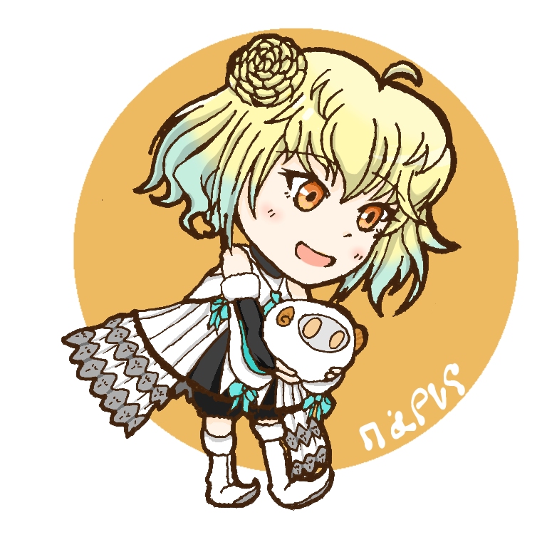 …とりあえず今自分にできそうなことをグッズじゃないけど閃いたのでそれをやるね剣で戦う初代様、棍棒がメインのオリオン、腕が武器なロムルスに続き、鞘がメインと言われるアルトリア