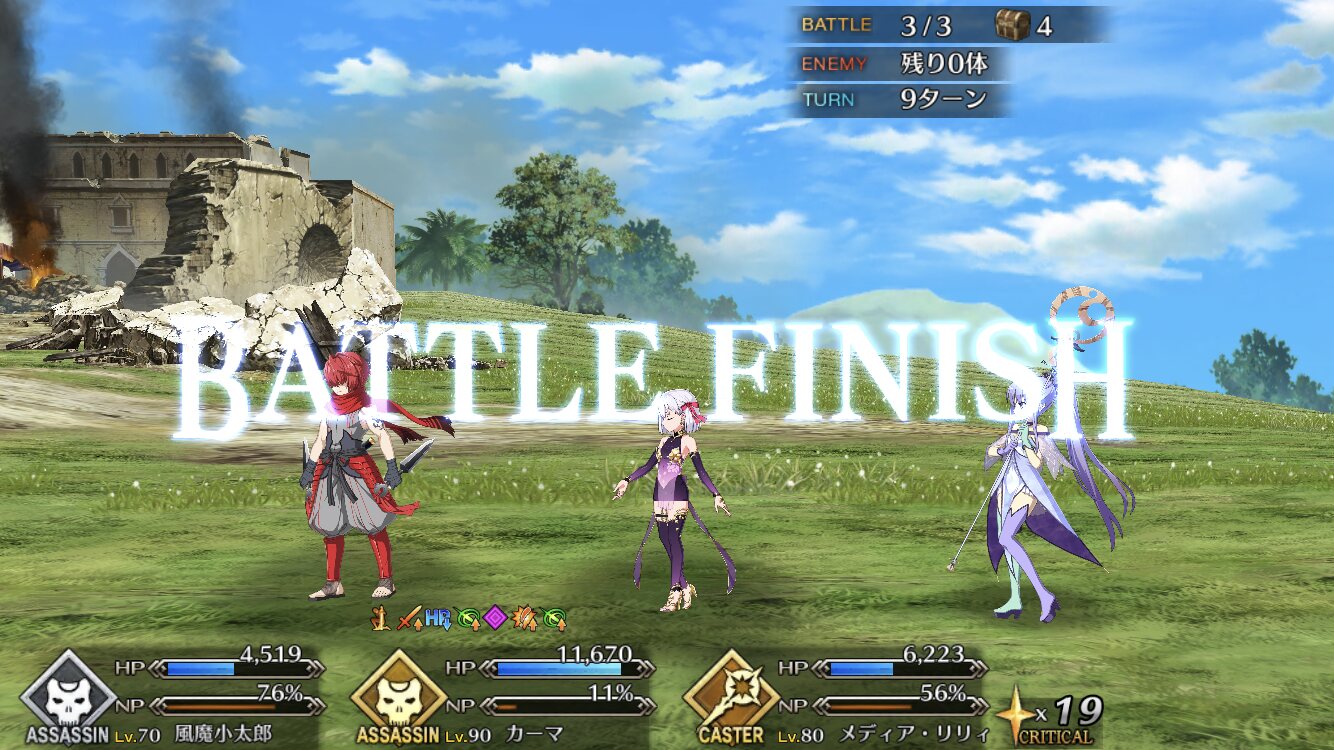 何気に付き合いの長い鬼さん。雑に前衛に突っ込んでじりじり粘りながら宝具まで狙えるのが良いですよ。NP0から始めてもため切るまで生き残れるので宝具火力が結構すごい。ちなみに宝具が重なったのもかなり早かったですね。