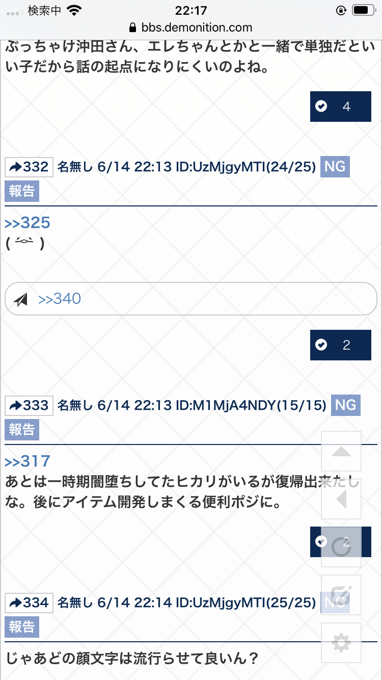 了解。こっちは流れ早いからその方が見つけやすいですね>>949
