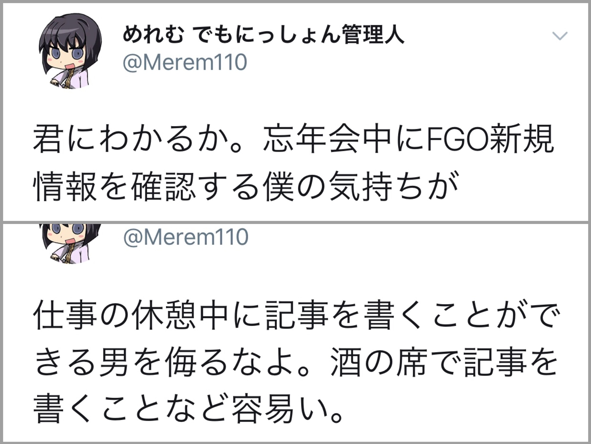 ……そうか?クェスは星5鯖を求めていたのか。それで、それを私は勘違いして、クェスに星5礼装をあげたんだな……>>978